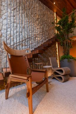 Com volumetria leve e fachadas envidraçadas, o edifício reflete a integração entre interior e exterior, luz e sombra, silêncio e movimento. O uso de materiais naturais, texturas amadeiradas e iluminação difusa cria uma atmosfera acolhedora e refinada. É um espaço que expressa o conceito japonês de Omotenashi, em que cada detalhe é pensado para acolher, surpreender e inspirar.