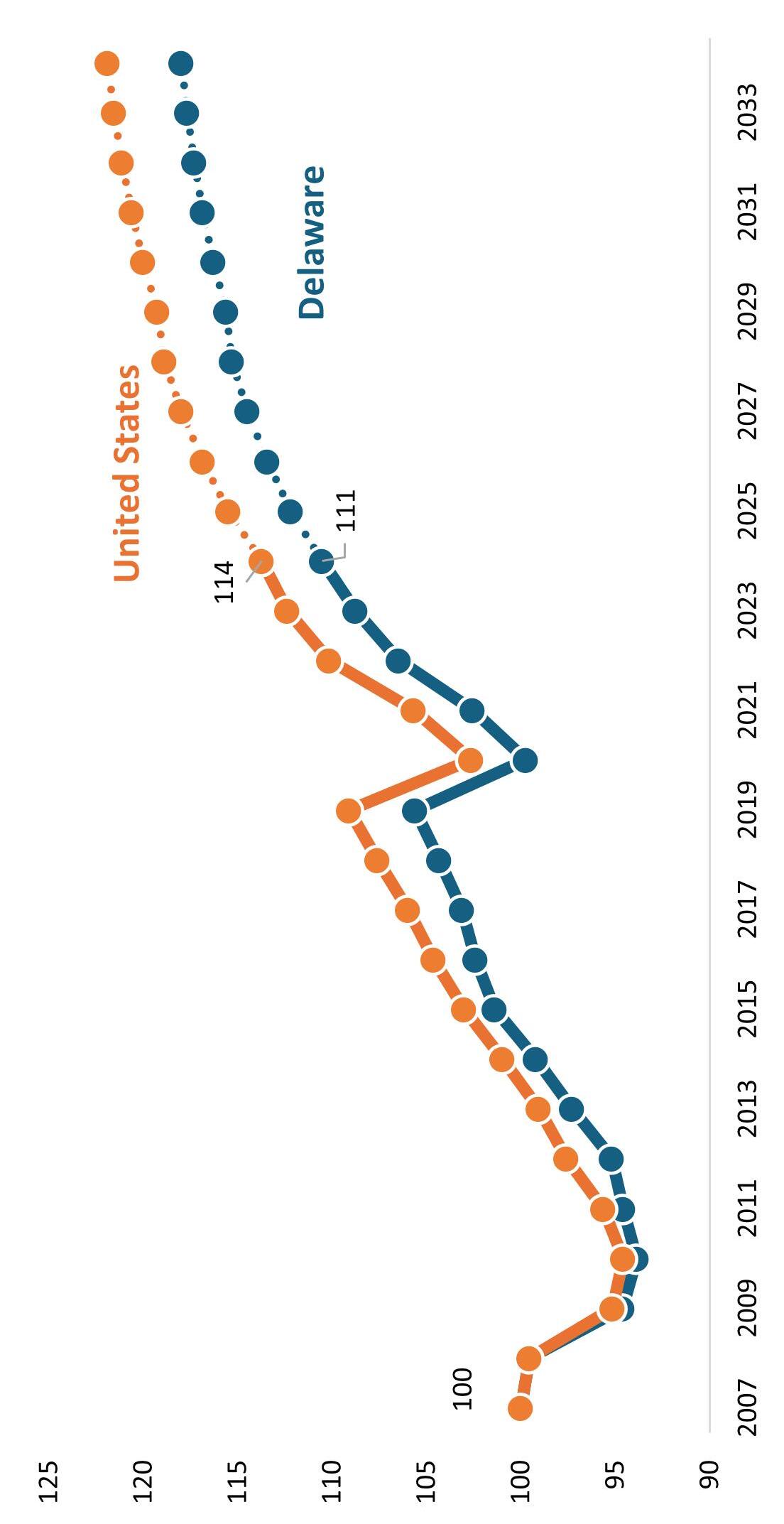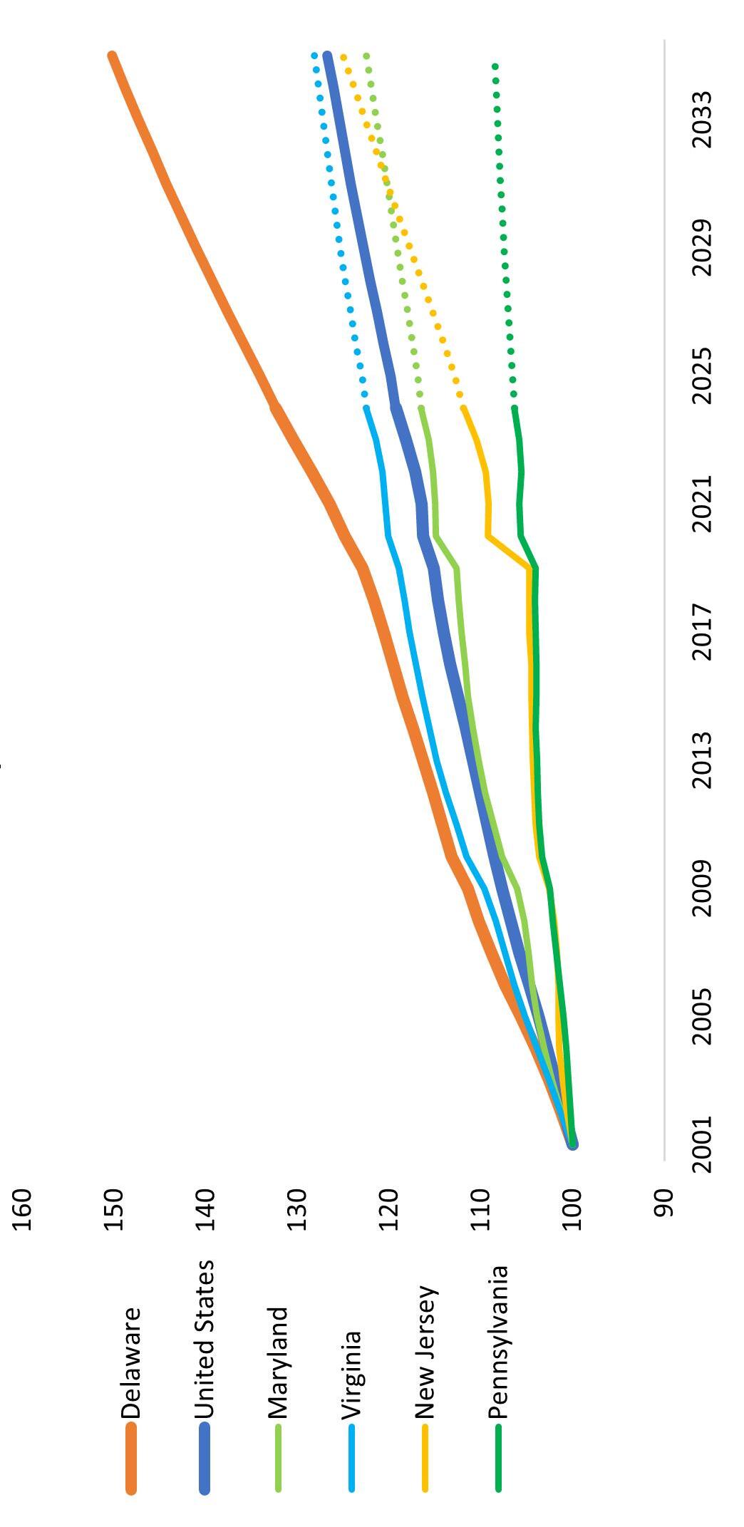 As part of this effort, we are planning to develop an interactive competitiveness dashboard on our website that will incorporate this data and additional indicators over time. This tool will allow policymakers, businesses, and the public to easily explore trends and better understand the forces shaping Delaware’s future.