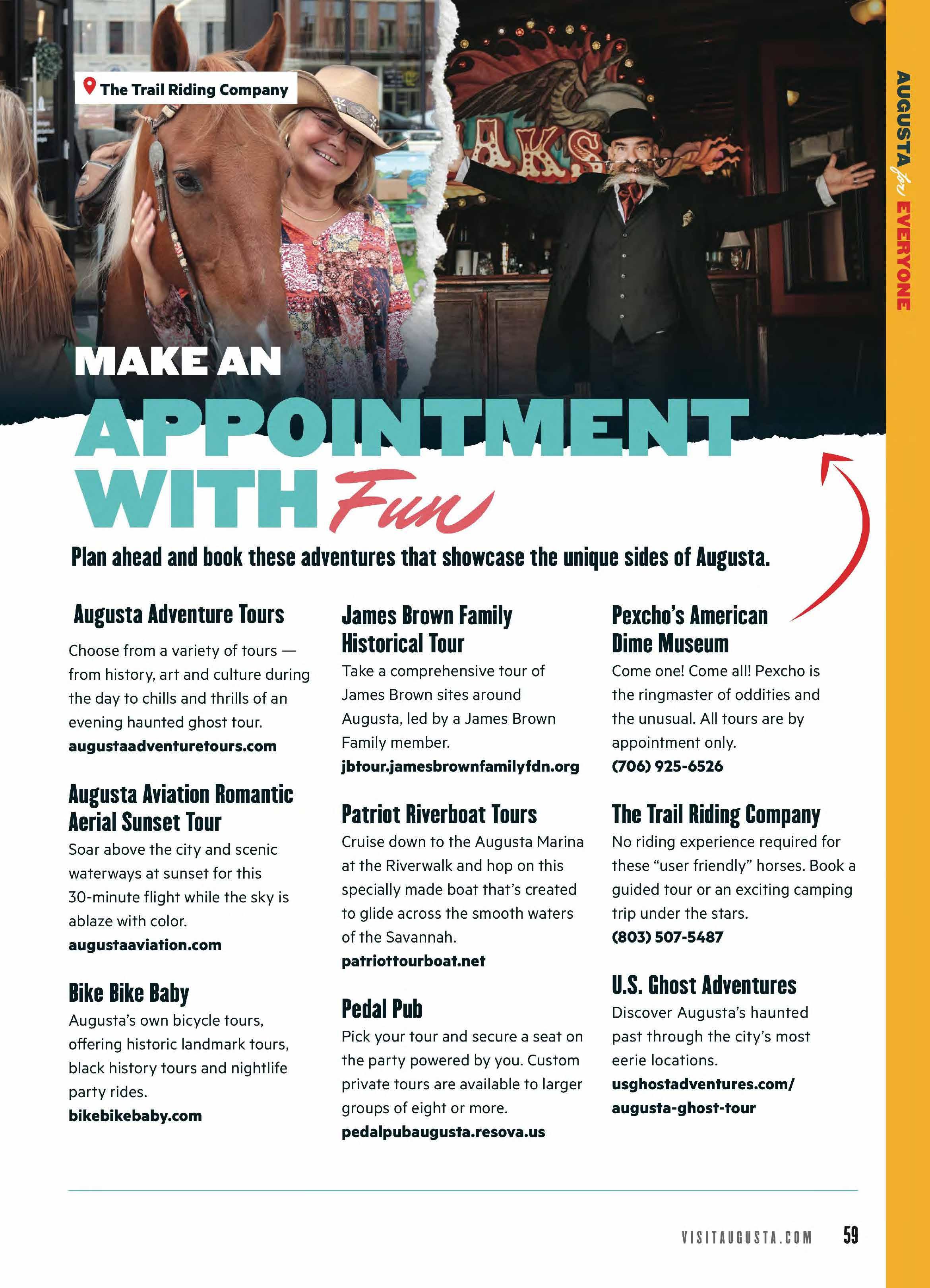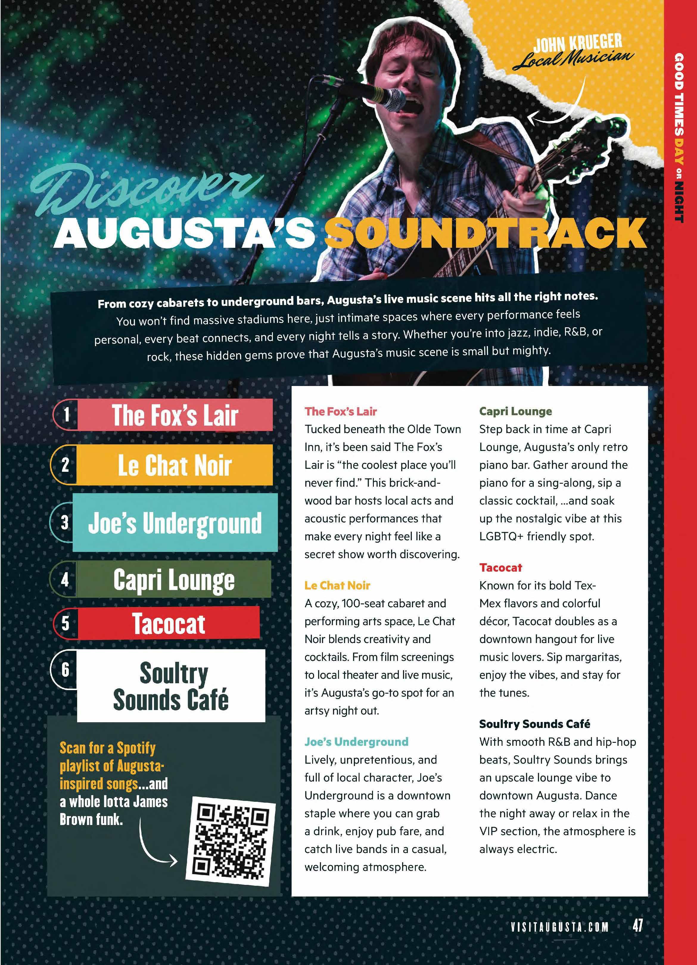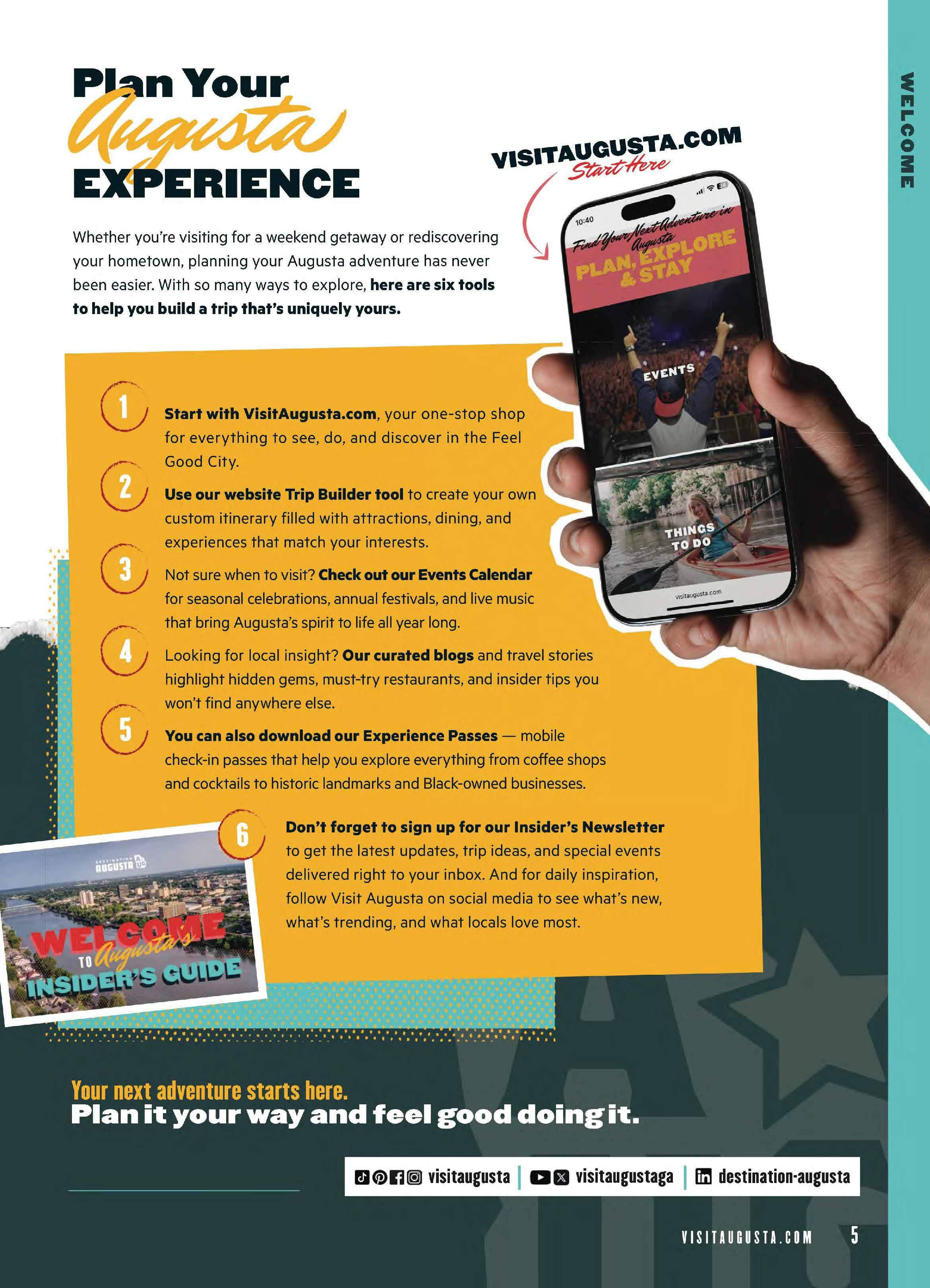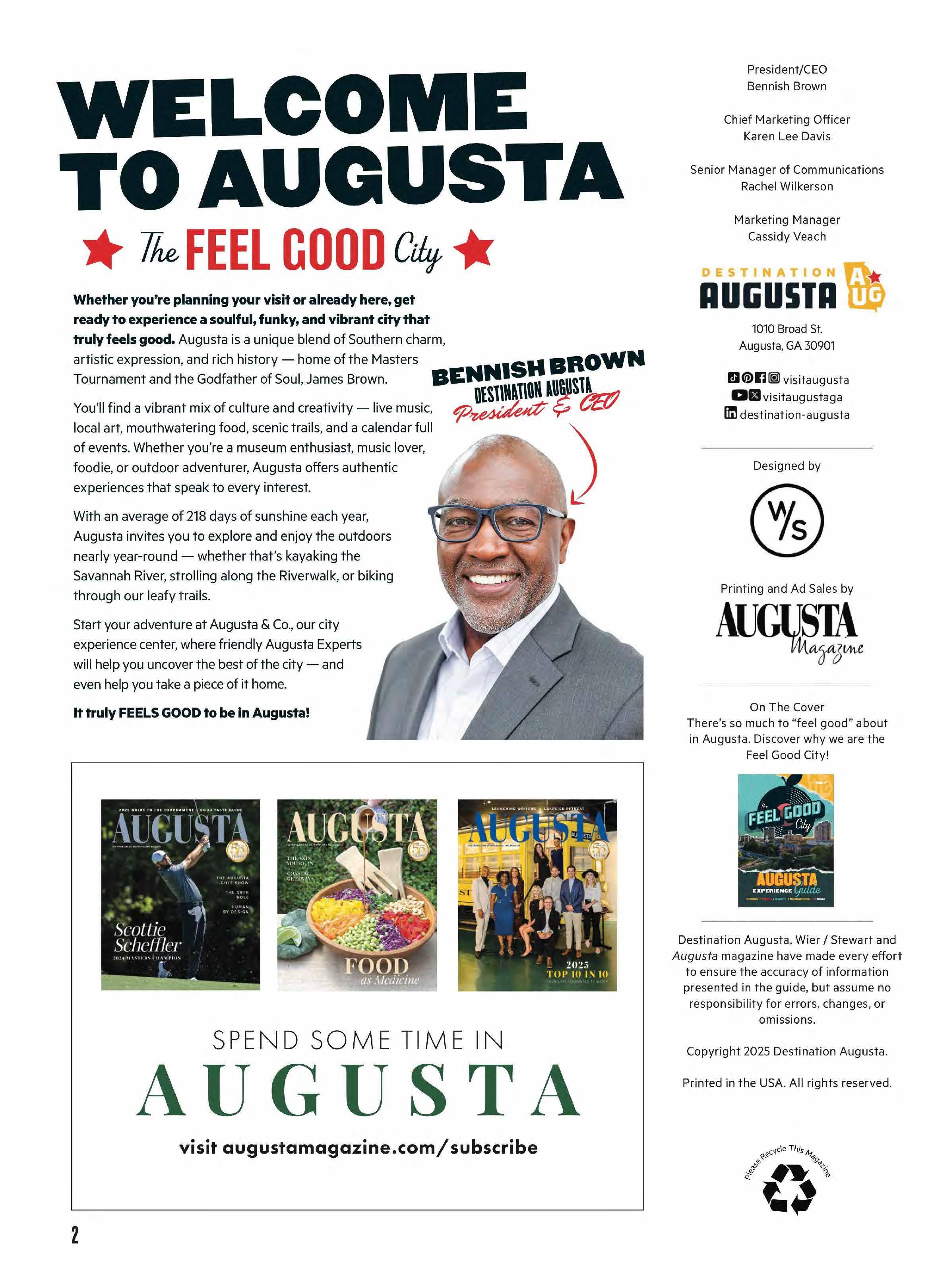 Experience Augusta, the Feel Good City, where soulful sounds, vibrant flavors, and creative energy come together in all the best ways. The Augusta Experience Guide is your go-to for funky finds, local favorites, and can’t-miss moments—from art and music to food, festivals, and fresh-air adventures. It’s everything you need to explore the city’s rhythm and make every moment feel good.