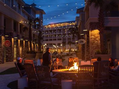 On the Sweetgrass Plaza: Poolside casual dining, seasonal live music, colorful cocktails, and cold beer.
