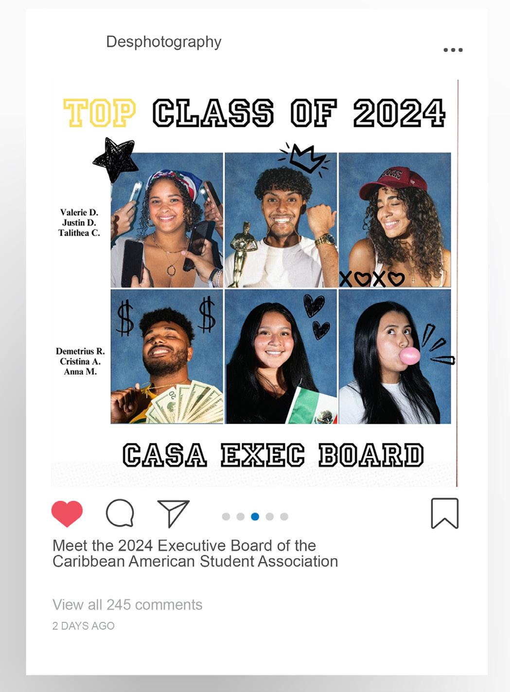 I collaborated with the Caribbean American Student Organization to create a unique yearbook-style Instagram layout.