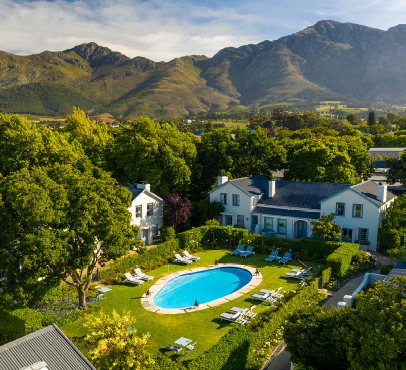 Tucked away in private gardens just under an hour’s drive from Cape Town is this romantic 21-room haven. With a variety of in-house dining options as well as elegantly appointed rooms, guests can enjoy a modern retreat with spectacular scenery. Le Quarter Français is perfectly located for visitors to explore the surrounding Winelands – engage in wine tastings in surrounding estates, visit diverse art galleries in Franschhoek, or embark on tours of picturesque gardens in Babylonstoren and Boschendal.