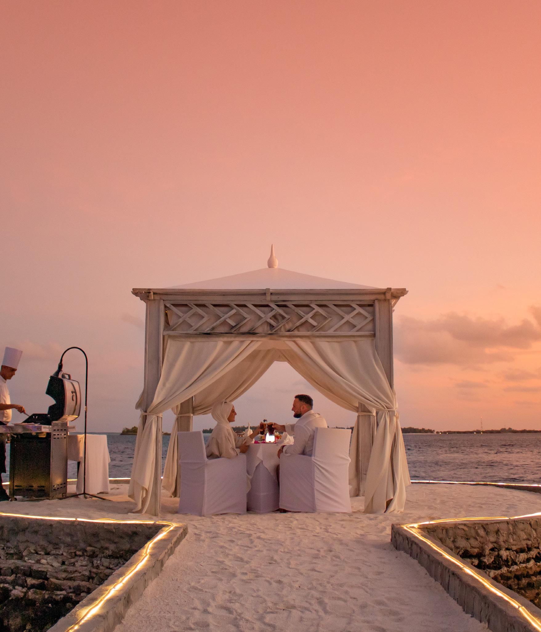 The warm hues of the sun will bathe each photograph in a romantic light, perfectly capturing the essence of your day. Let Rolls Royce wedding buggies transport you to your ceremony in style before traditional Maldivian drummers guide you down the aisle. The expertise of the wedding team guarantees memories to cherish no matter your preferences.