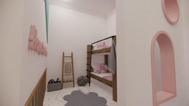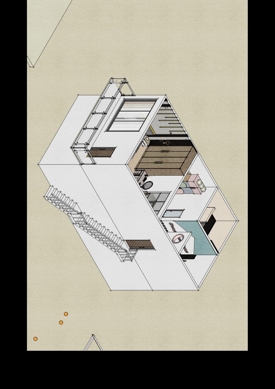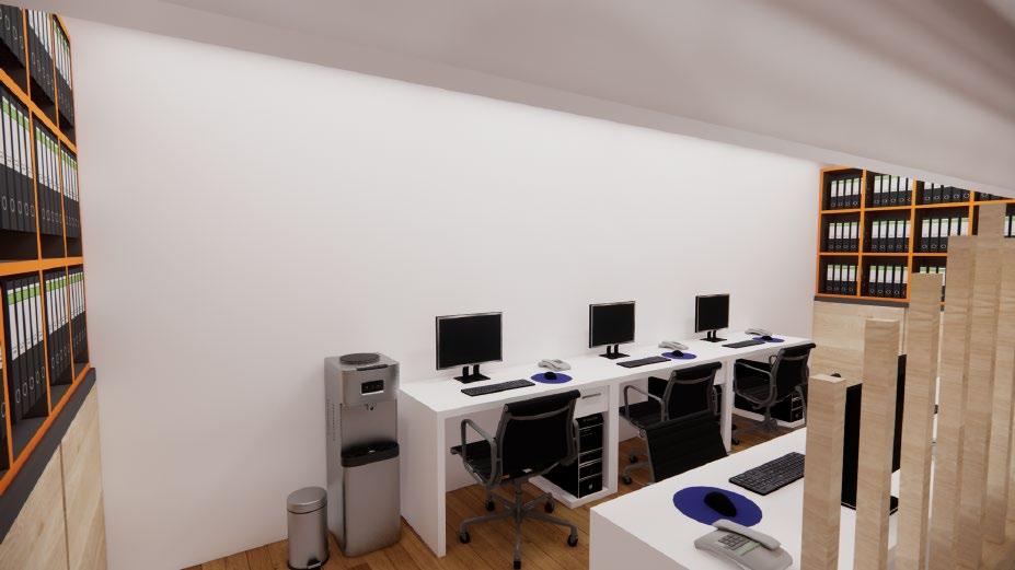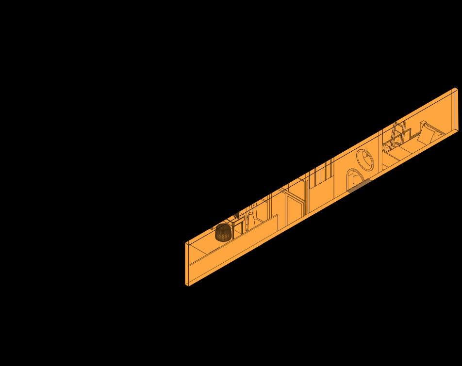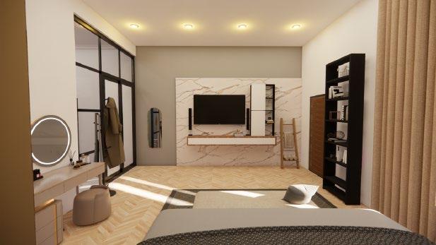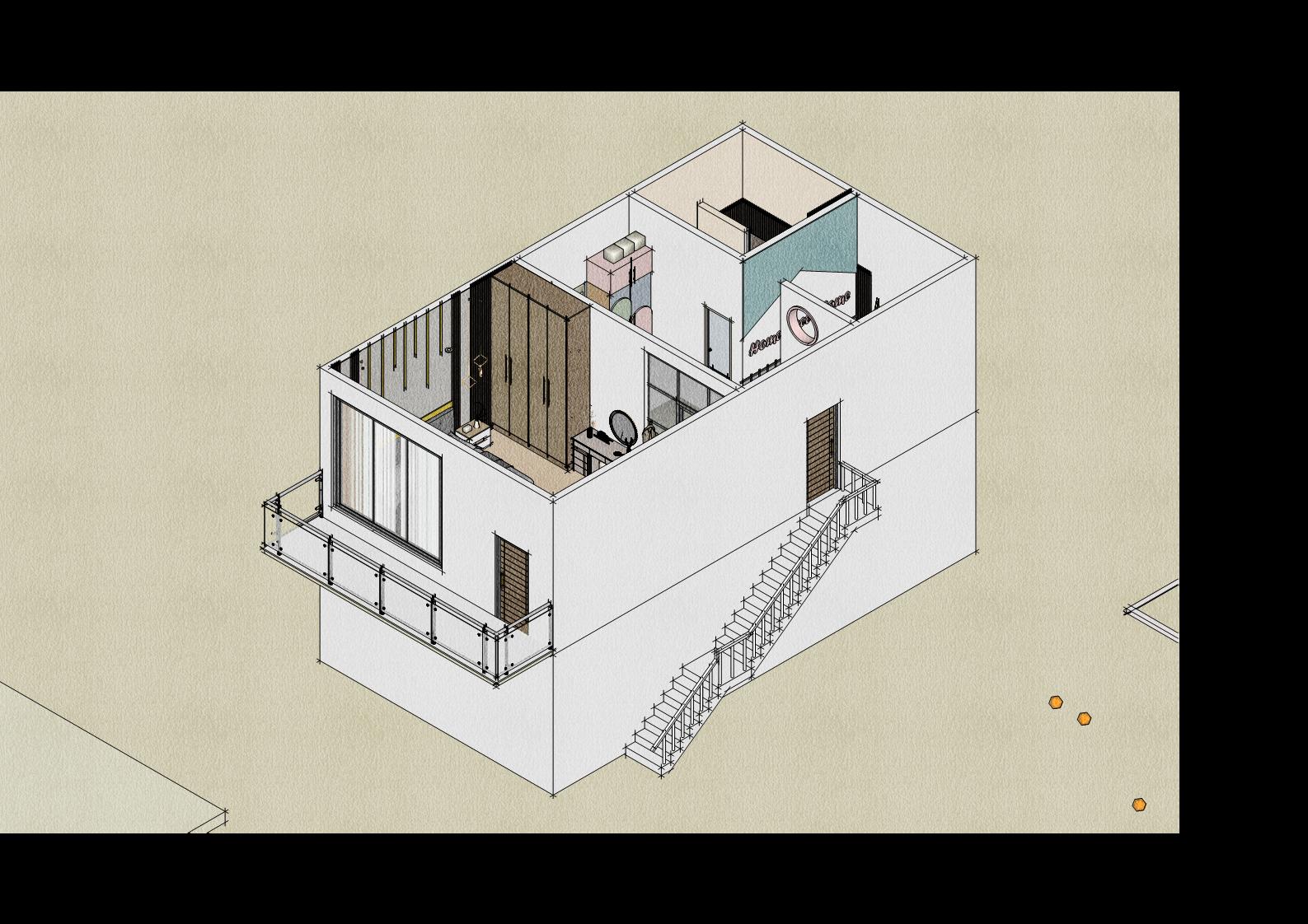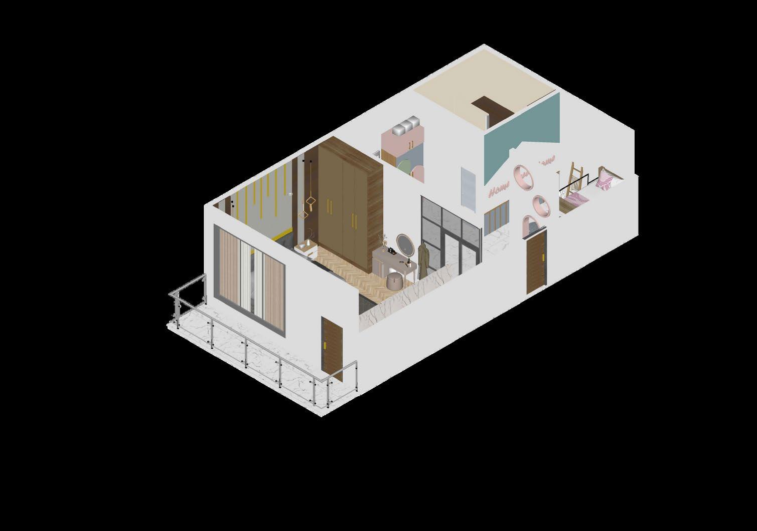 Secara keseluruhan perancangan yang baru mengganti dinding partisi solid dengan partisi dari plywood untuk menghadirkan suasana yang lebih luas namun tetap mempertegas dua ruangan yang berbeda Partisi ruangan yang hadir dapat pula difungsikan sebaagi rak buku Dekorasi ruangan dilengkapi dengan lampu rotan yang sesuai dengan suasana neteral yang diterapkan.