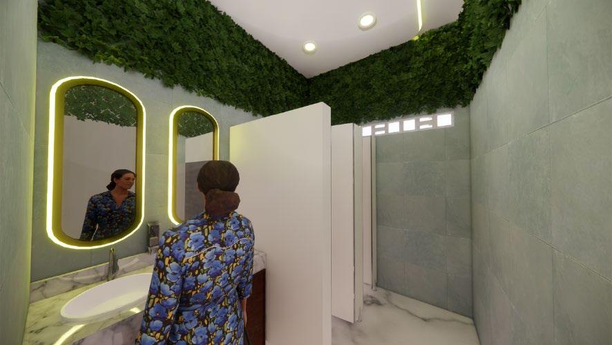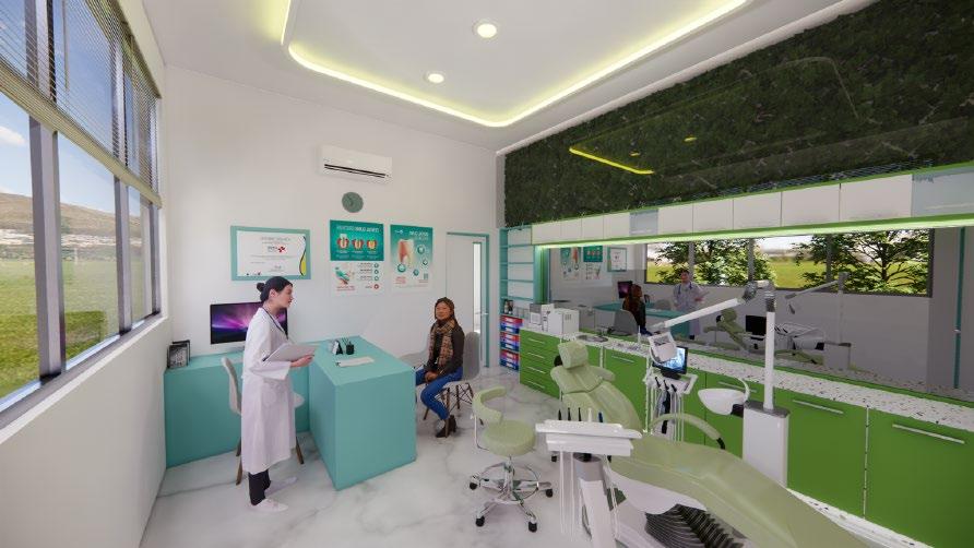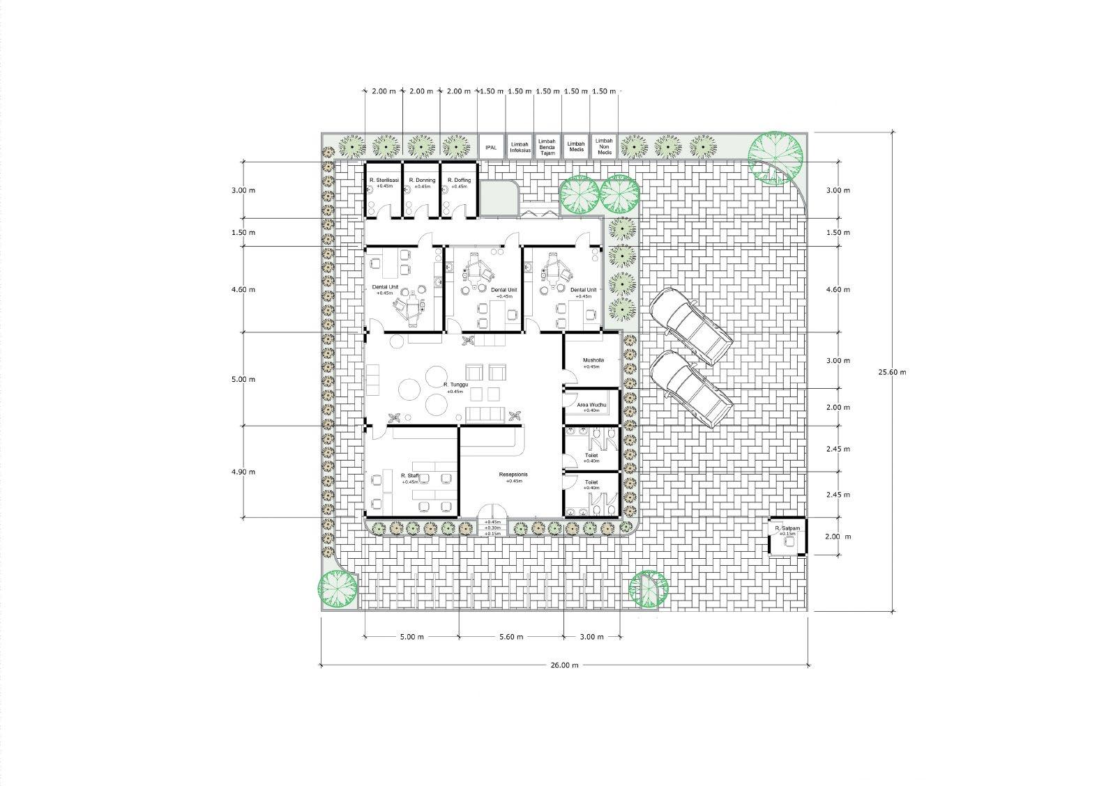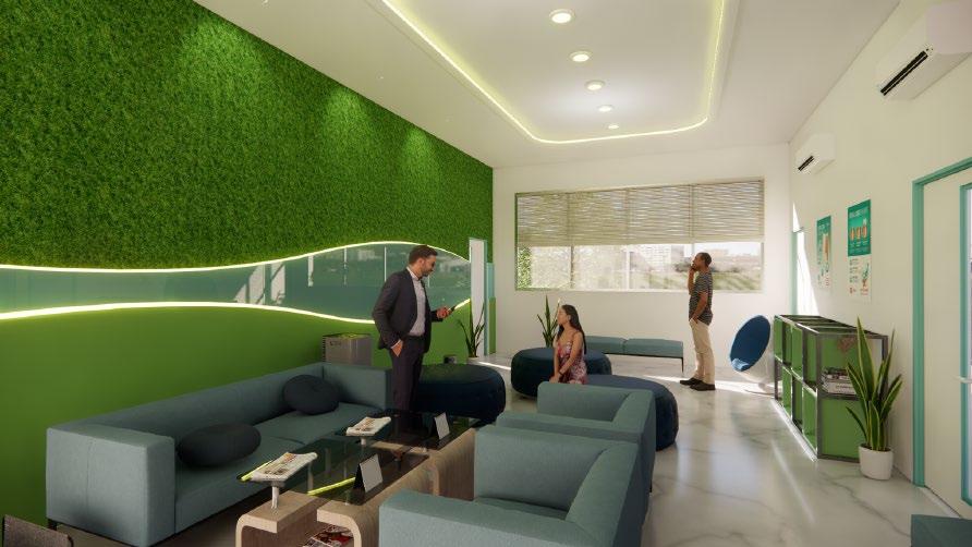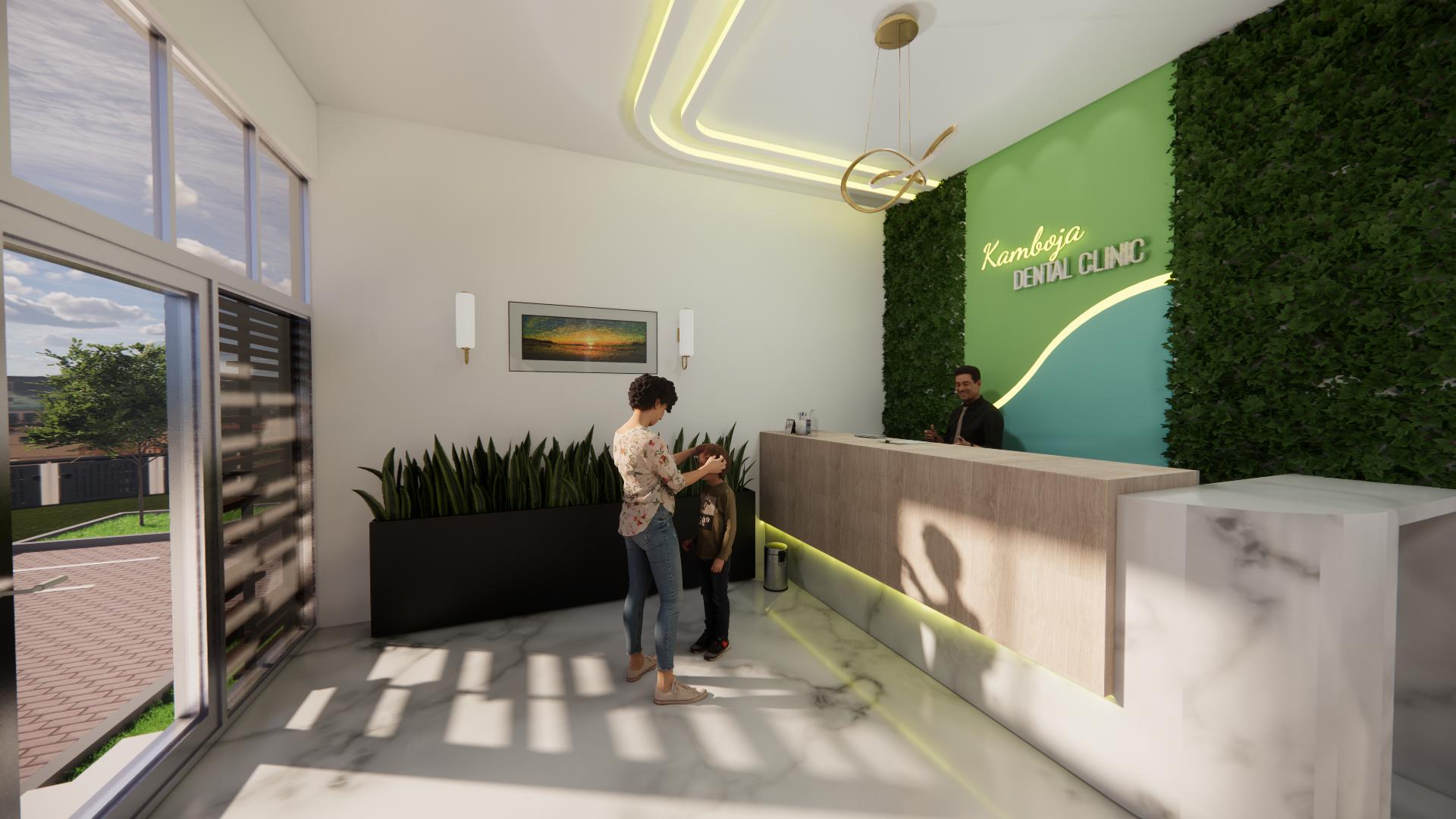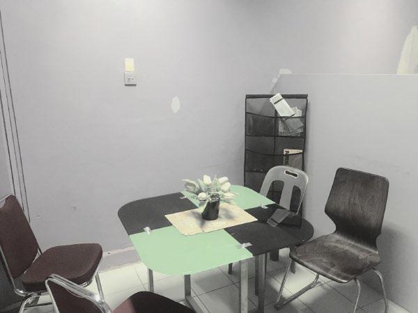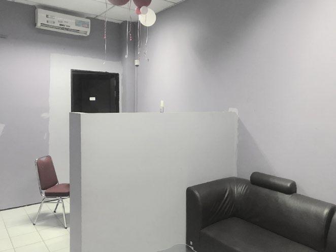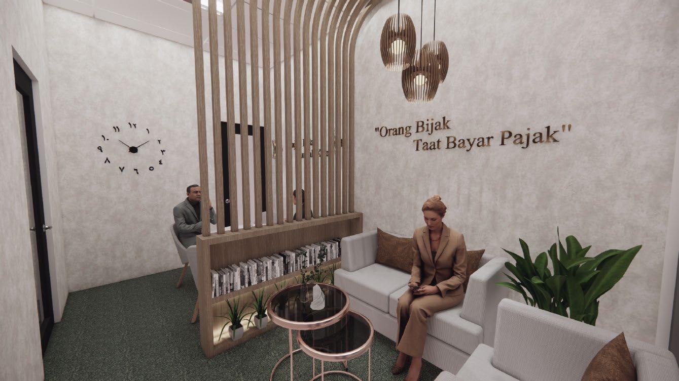 Perancangan ruang konsul dan ruang tunggu tidak mengubah tatanan ruang dan furnitur karena kondisinya sudah optimal untuk menhadirkan luas ruang yang sesuai serta sirkulasi yang cukup. Oleh karena itu perubahan yang diterapkan ada pada penggunaan wallpaper yang bernuansa netral dan perubahan partisi solid dengan bentuk kisi-kisi.