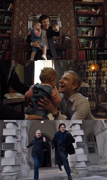 O mesmo com o John e o Sherlock da BBC. Mais uma vez o suposto relacionamento deles é uma piada dentro da série, óbvio que não há nada gay entre eles, é só uma brincadeira para gerar conteúdo de humor.