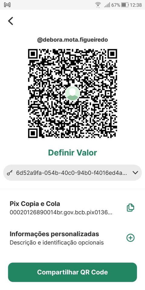 Chave PIX aleatória: 6d52a9fa-054b-40c094b0-f4016ed4aa00