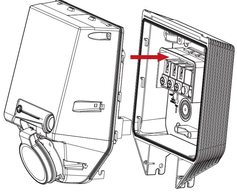 The charge point is simply connected onto the base, with a front fascia clipped over the power module, and secured with a security torx screw.