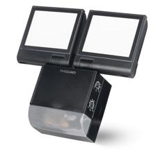 ■ Powerful 2000 lumen (2x 10W) twin head, IP55 floodlight with 140° detection angle and 10m range
