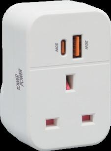 TP6111 Socket Adaptor and 20W Dual A+C USB Charger with PD, QC