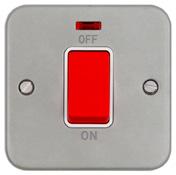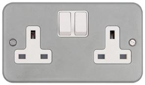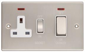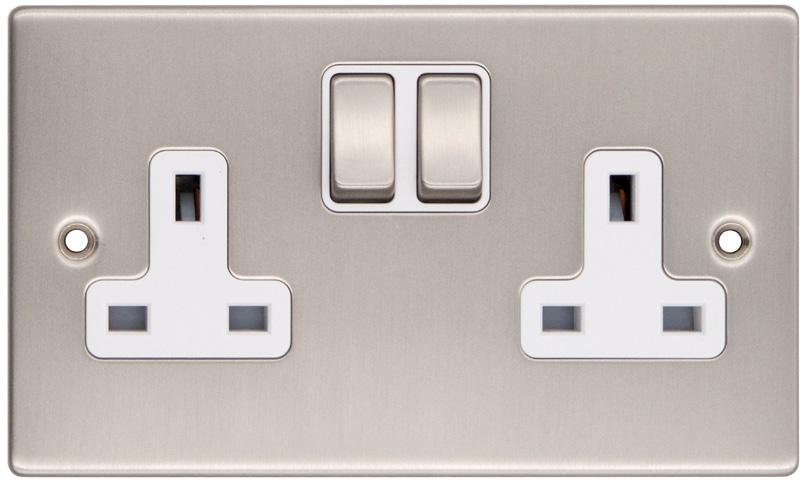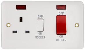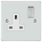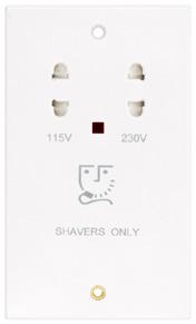 Sockets are available with either single or double pole switches. Live and neutral plug pin contacts on sockets are shielded by earth pin operated safety shutters.