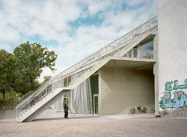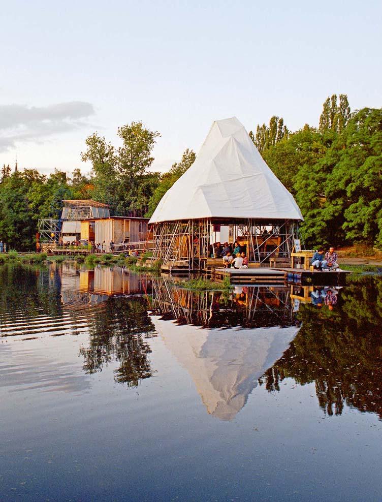 Half planned, half improvised, a robust raw structure was created that constantly changes according to the skills and desires of its users. Every year, new versions or interpretations of the university emerge, like a song covered by different performers. A diverse program quickly devel oped, featuring concerts, readings, discussions, workshops, film screenings, barbecues, dance performances, nature tours, and sports courses. A non-profit association was established to turn the temporary facility into a permanent one. In 2021, at the Architecture Biennale in Venice, Floating University received the festival’s highest award, the Golden Lion. The exemplary project shows how residual urban spaces can be conquered, activated, interpreted, and implemented in multiple ways with little intervention. Nevertheless, its future is uncertain, as the state-owned Tempelhof Projekt GmbH and the municipal district would prefer to see the temporary structures removed. Paradoxically, its success and popularity seem to be the project’s biggest threat. fh