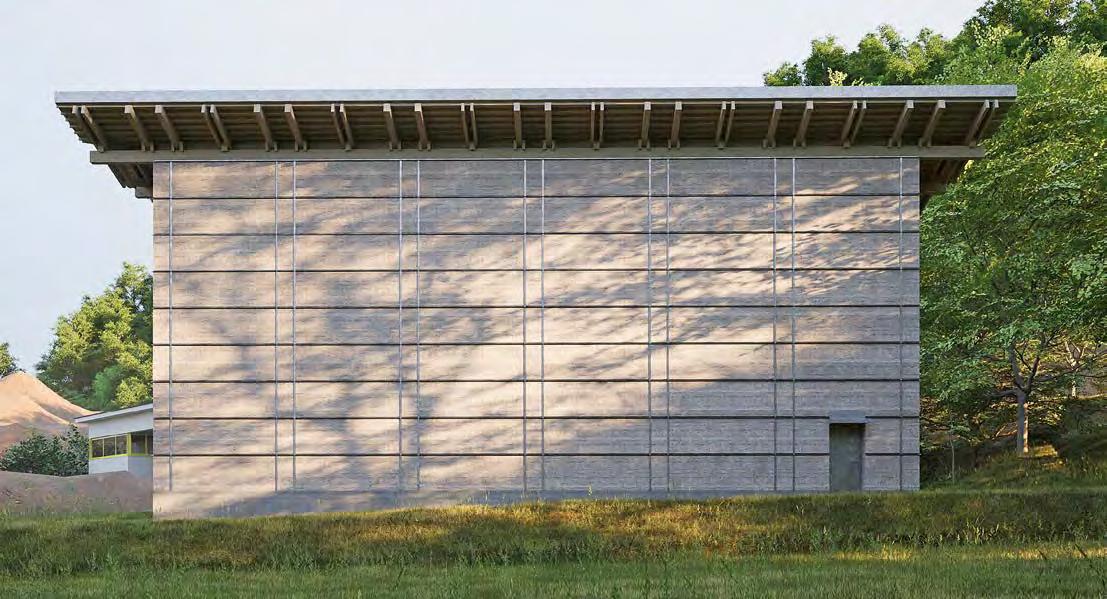 Aside from technical aspects, hybrid construction methods offer a broad range of design opportunities for contemporary modern rammed earth architecture. The targeted combination of different materials allows transferring traditional earthen construction methods into a contemporary and innovative context. The interplay between material and feel can be particularly aesthetic and expressive if rammed earth is combined with other materials. The juxtaposition creates an immediate sense of tension that is hardly attainable otherwise and provides architecture with a specific notion of depth. For example, the competition entry for an industrial