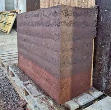 examine the hues on a larger scale and evaluate the impact of the mix on the surface structure and the compaction pattern. Further, mockups can serve to test and visualise particular details, such as weather protection measures or connections to other building components (see “Stabilising erosion barriers” and “Connections to other building parts”, p. 23). For this purpose, it is helpful to use samples to simulate the effect of different weather conditions (for instance, rain, sun) and test the resistance of the material to external influences. This comprehensive set of examinations ensures that the aesthetic and functional project requirements are met before the actual construction work begins.