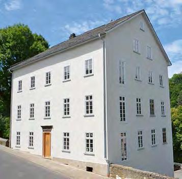 The house Hainallee 1 in Weilburg is world famous to this day (Fig 6). It is six storeys tall and, thus, one of the tallest rammed earth buildings in the world. With a height of 23.2 m and built between 1825 and 1828, Wimpf originally intended it as a home for his children. The building features a pitched roof and is situated on a steep slope. Facing the street, it displays three storeys. On the back, it is six storeys tall. Similar to Cointeraux, Wilhelm Jacob Wimpf also compiled the knowledge he acquired in a book, published in 1836. His construction projects transformed Weilburg into a local centre of rammed earth construction. Many buildings were realised with this method and in part still exist today [8].