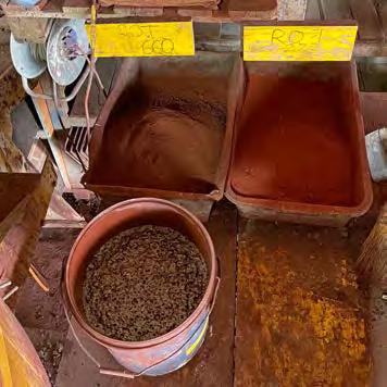 The final colouration of the material is often revealed by the first test cubes, since it is directly influenced by the composition of the raw resource. Additives such as clay, silt, sand, and gravel, stabilisers such as lime or cement, as well as colour pigment all influence the final appearance of the material (Fig. 9 –13).