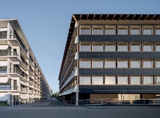 driven less by ideology than by pragmatic choices and a pursuit of longevity. The synthesis of high-tech and “eco” has long been aesthetically convincing too. In this issue, we showcase the beauty and potential of natural stone, hemp bricks, and hempcrete; visit a reconstructed “Strickbau” (traditional timber-log construction) that upends the very definition of “immovable property”; look behind the facades of a 16-storey timber housing block; and examine the timber-earth slabs at Hortus, a key project by Herzog & de Meuron. For Alexander Franz, Project Director & Associate Architect, certifica tions for building components are decisive (see interview on page 32). At Hortus, the earth in the ceilings serves as part of the fire safety strategy. This game-changer is already firesafety certified for Switzerland; it isn’t restricted to insiders and, as in nature, imitation is encouraged.