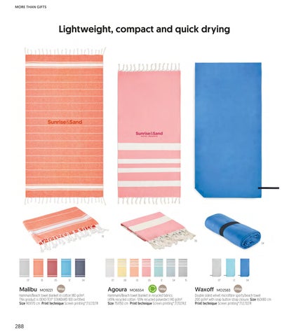 Hammam/Beach towel blanket in recycled fabrics (45% recycled cotton -55% recycled polyester) 140 gr/m². Size 75X150 cm Print technique Screen printing*,T1,TD,TR,E