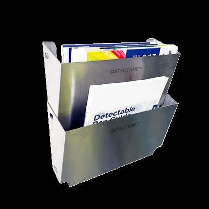 • Slim, wipe-clean laminated X-ray card with multi-bearing contaminant inserts and high-visibility colour coding, designed to slide easily between packaged or tray-assembled products.