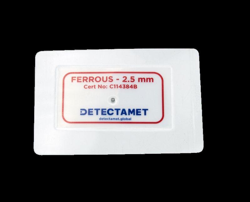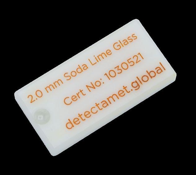 • Slim, wipe-clean laminated X-ray card with multi-bearing contaminant inserts and high-visibility colour coding, designed to slide easily between packaged or tray-assembled products.