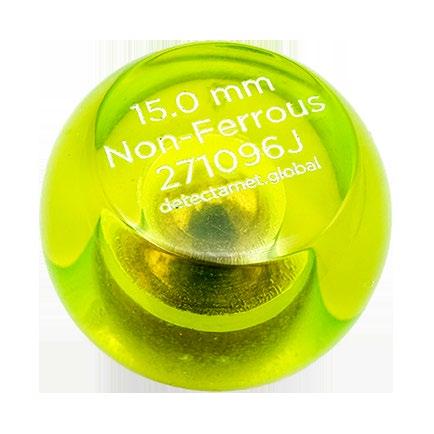 • Spherical shape ideal for throat/pipeline metal detectors typically used for detection in liquids.