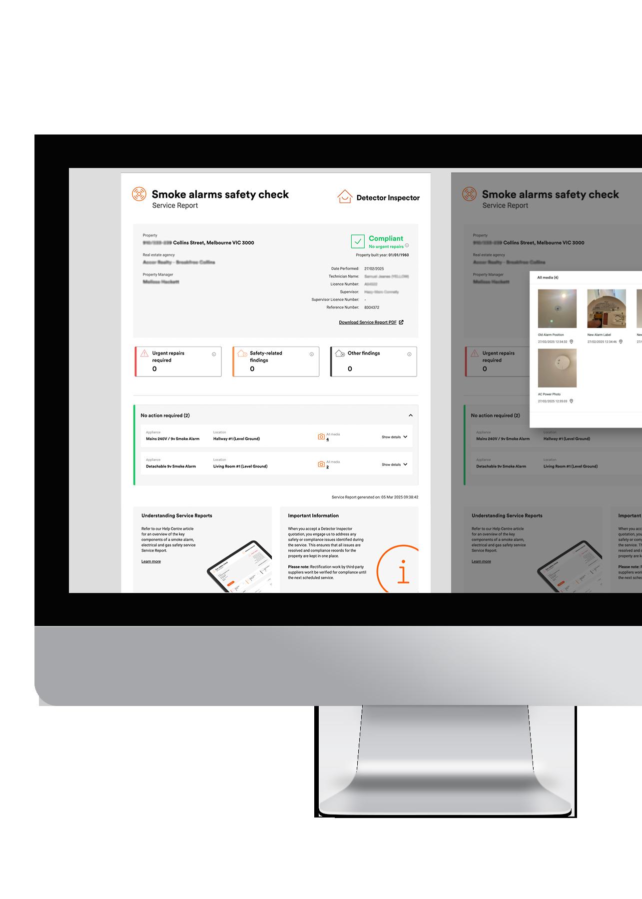 • A Service Report that details the property’s compliance with all applicable smoke alarm legislation