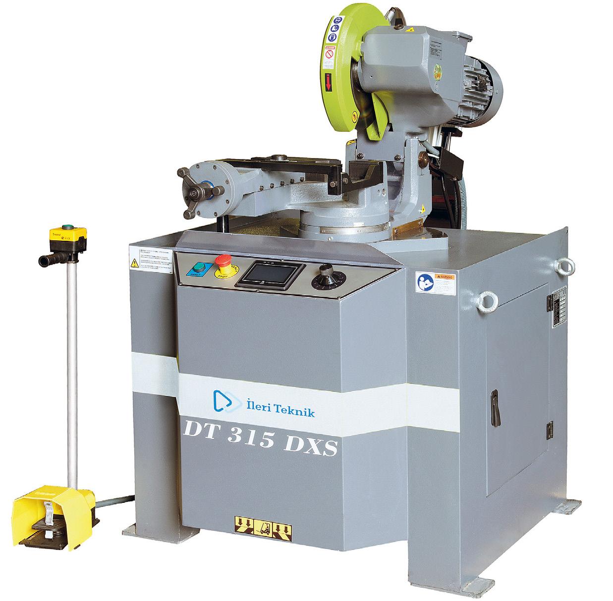 De machine van Italiaanse makelij zaagt rechts, van O° tot 60° en links van O° tot 45°.