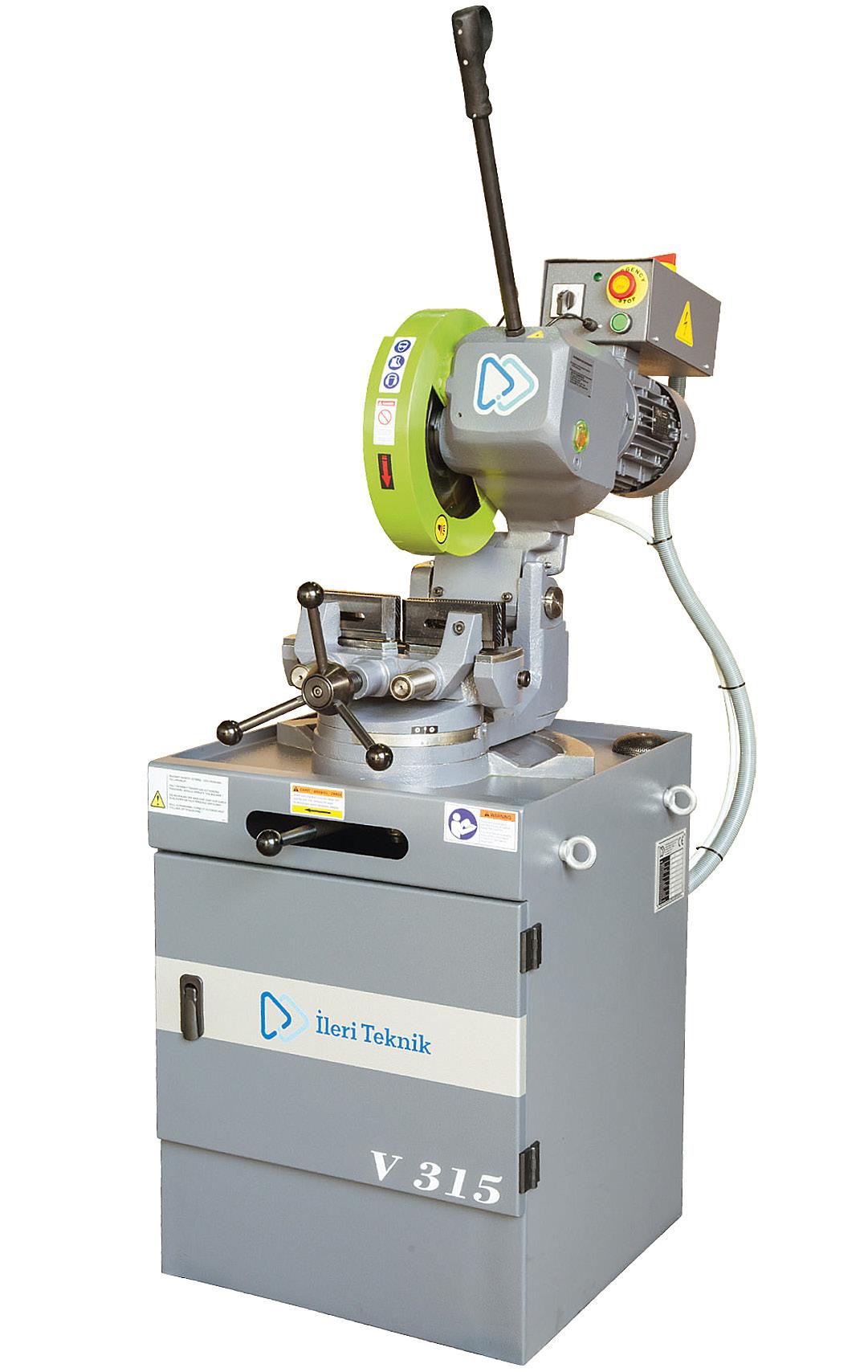 De machine van Italiaanse makelij zaagt rechts, van O° tot 60° en links van O° tot 45°.