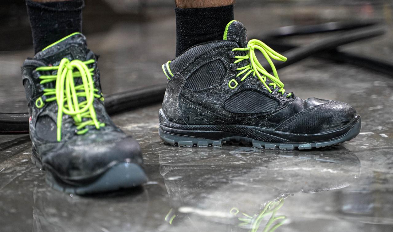 Een tweede probleem stelde zich bij de schoenen van de winkelmedewerkers. Om kwaliteitsredenen in de voedingsindustrie werd vroeger standaard gewerkt met schoenen zonder veters. Deze schoenen veroorzaakten erg veel klachten over voetproblemen bij de medewerkers. Na een uitgebreide zoektocht vond Meat & More een stevige schoen met veters die aan alle normering voldoet bij De Tollenaere. Ze kozen voor het hoge en lage model van Sixton met een afwasbare oppervlakte. Sindsdien zijn de klachten van de medewerkers’ voeten enorm verminderd en staat quasi iedereen met happy feet in de winkel. 9