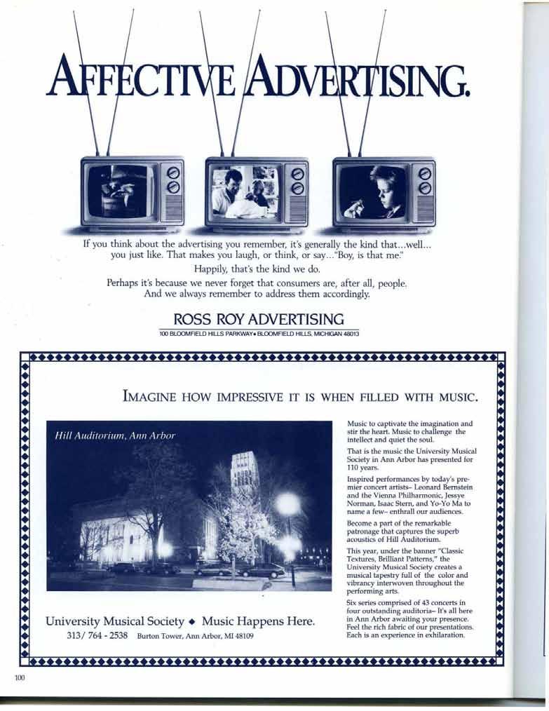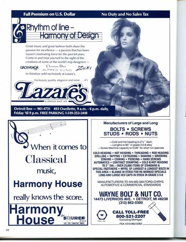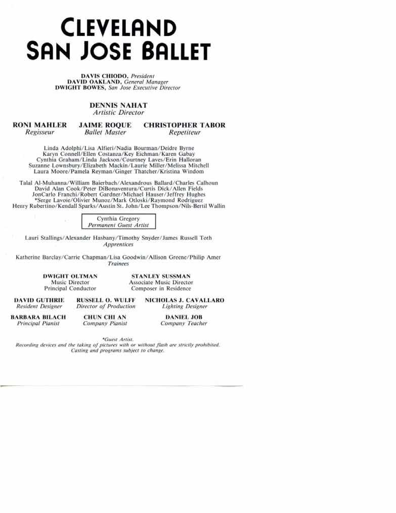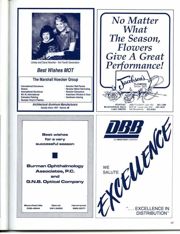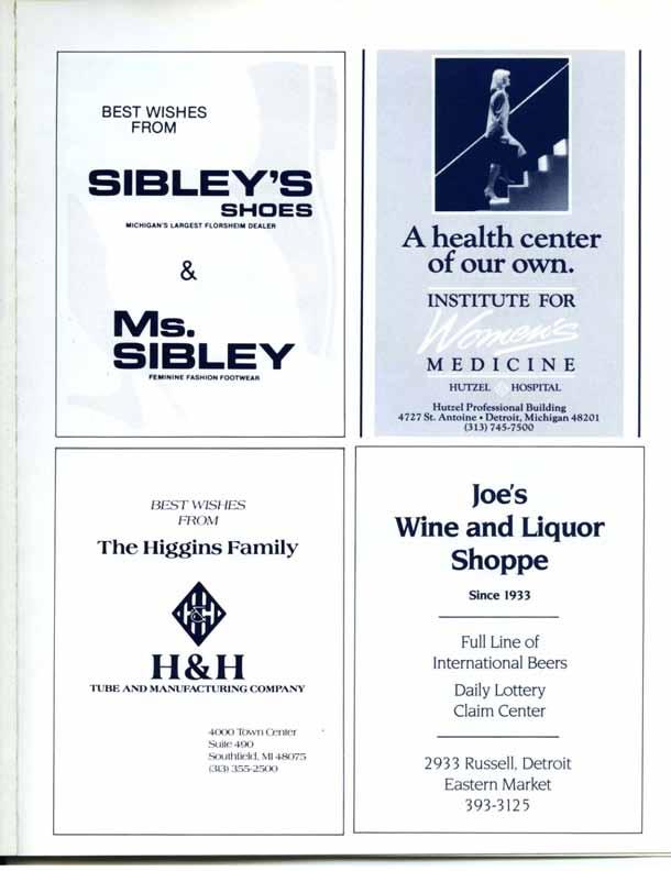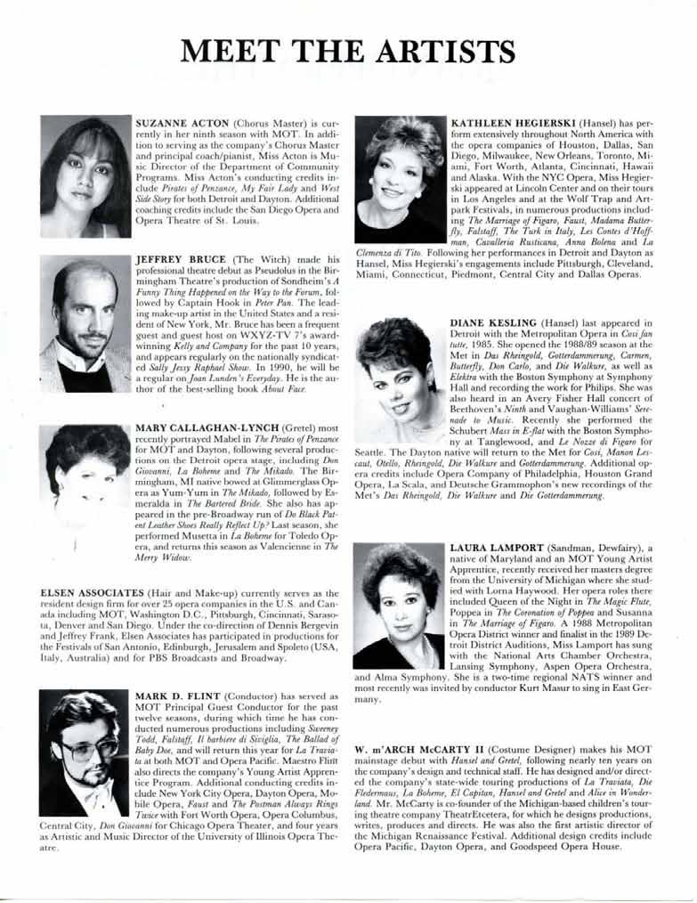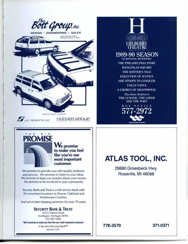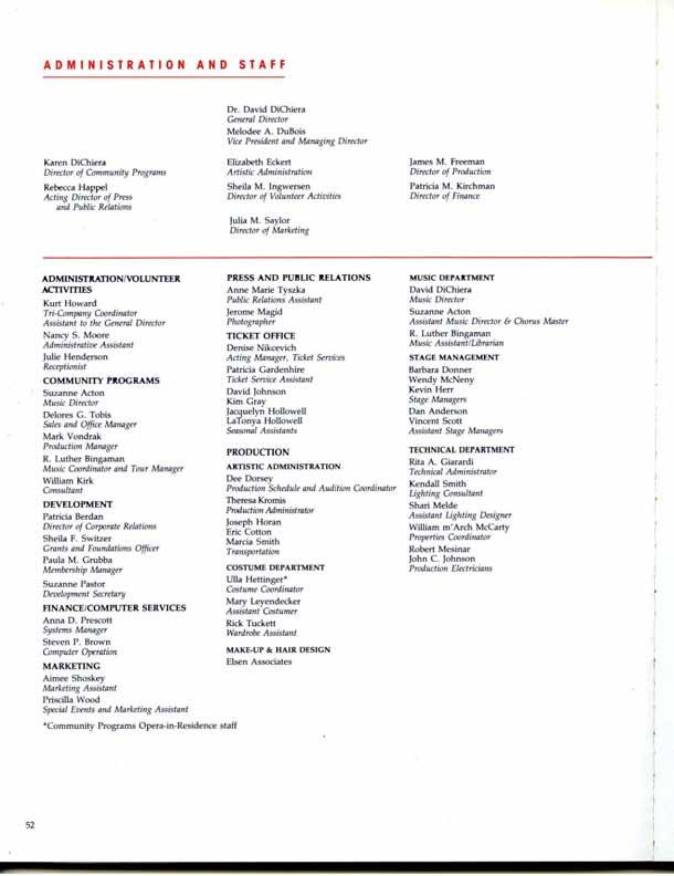 We also pause within these pages to laud the efforts and financial contributions of so many concerned and dedicated patrons, corporations and foundations that have generously contributed to the company, one of Detroit's finest cultuml treasures. Similarly, we acknowledge our many volunteers and salute their continued efforts at promoting our activities.