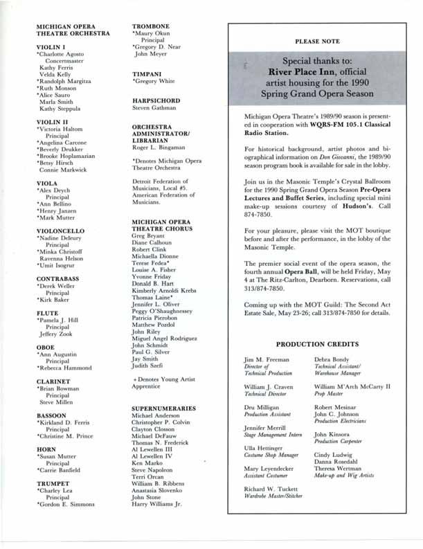 Special th a nk s t o River Place Inn , offi c ia l ar ti st h o u s in g for the 1990 Spring Gra nd Opera Season.