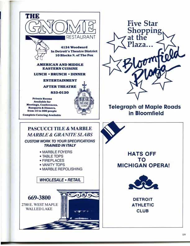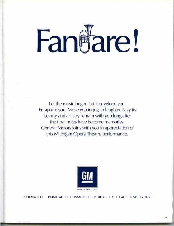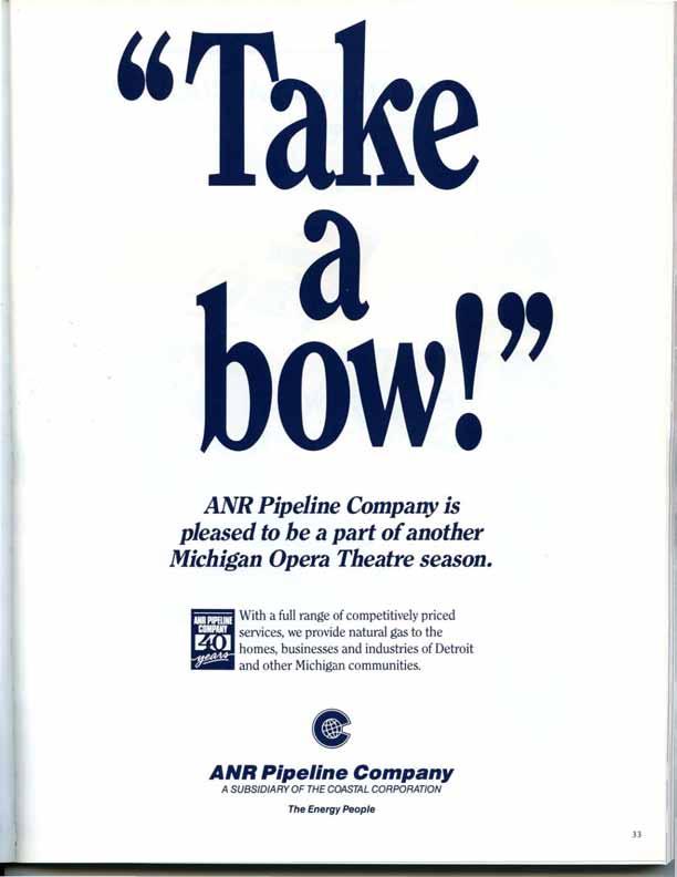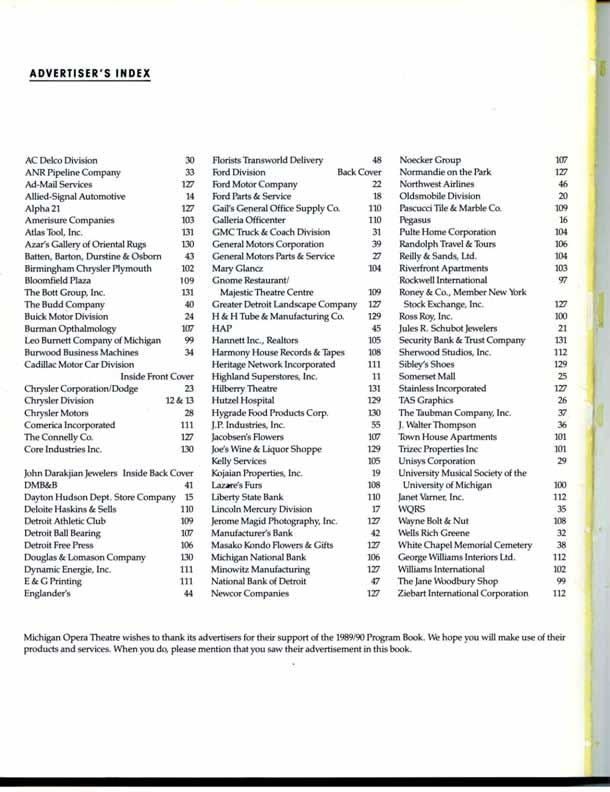 And finally, our season progmm offers to its readers an outstanding array of businesses and individuals that advertise in our yearly publication, signifying their belief in the mission of Detroit's premier opem company. Without these fine institutions, this commemomtive book would not be possible.