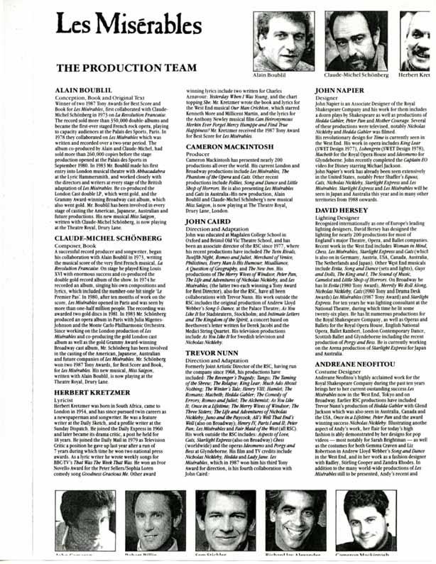 This coming season reflects our evolving artistic direction appropriate to the establishment of a permanent opera house for the city of Detroit. We will not only continue our tradition of showcasing the world's acknowledged opera stars, but we will have the opportunity to present our first grand opera for the holiday season-Hansel and Gretel-in addition to the premiere engagement of the nationally renowned Cleveland Ballet in a new and lavish production from the classical repertory of grand ballet, Swan wke And in keeping with our legacy of performing classics from the musical theatre repertory, I am pleased to present to you one of the brightest new works on the international scene, Les Miserables, made possible by our cooperative venture with the Nederlander Organization.