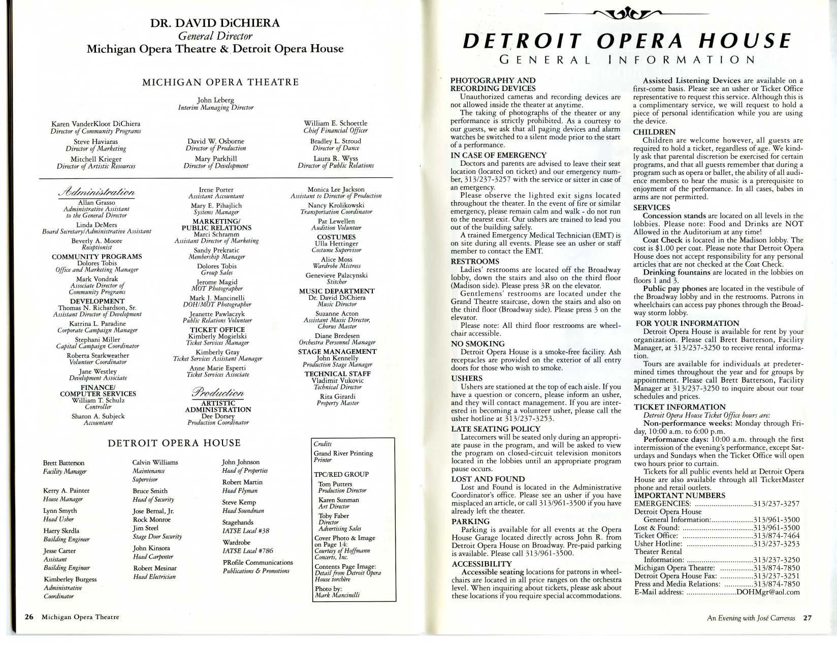 In the late 1980's the company seriously Grand Circus Theater, Luciano Pavarotti considered renovating the State Theater made his memorable promise to return to
