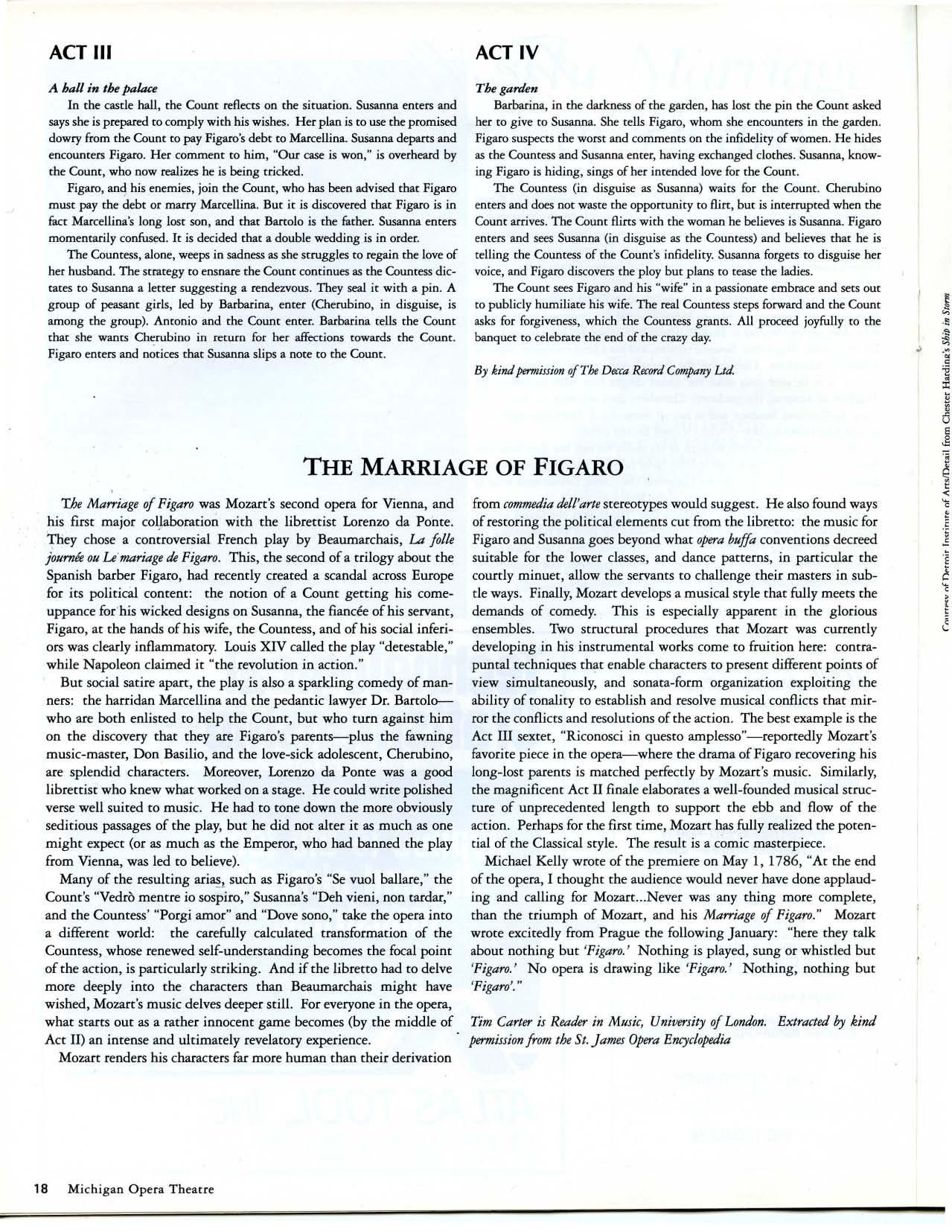 04r 1997 Spring Season is destined to be among the most exciting and artistically challenging seasons - to date, promising -something for everyone. For the ardent opera fan, we present The Flying D utch man, our very first Wagner opera, which I promised to present upon co mpletion of the Opera House. We will also present two proven favorites of the opera repertoire, Ri go l etto and The Marriage 0/ Figaro. We have assembled an international cast of celebrated luminaries including the company debut performances of Sumi Jo, Takova, Nicholas Loren , Carlo Ventre , Pamela Armstrong , Jee Hyun Lim , Richard Bernstein, Thomas Barrett, Eduardo del Campo, Susan Marie Pierson, Victor von Halem and Marek Gasztecki. The new season also embraces the return engagements of Haijing Fu, Tito Beltran, Janet Williams, Helen Donath, Louis Otey, Terese Cullen, Thomas Hammons, Ealynn Voss and Richard Cowan . Making his directorial debut is Dejan Miladinovic, and director Roman Terleckyj will return. Our maestros Steven Mercurio and Klaus Donath, both MOT veterans, will experience our fabulous new orchestra pi t for the first time; and John Mauceri, with whom I have had a long, wonderful relationship at Opera Pacific, will at last make his lon g-awaited Michigan Opera Theatre debut with The Flying Dutchman.