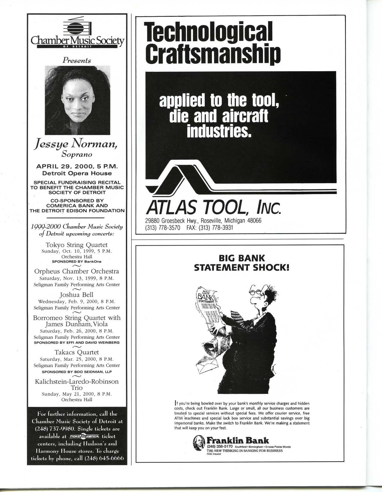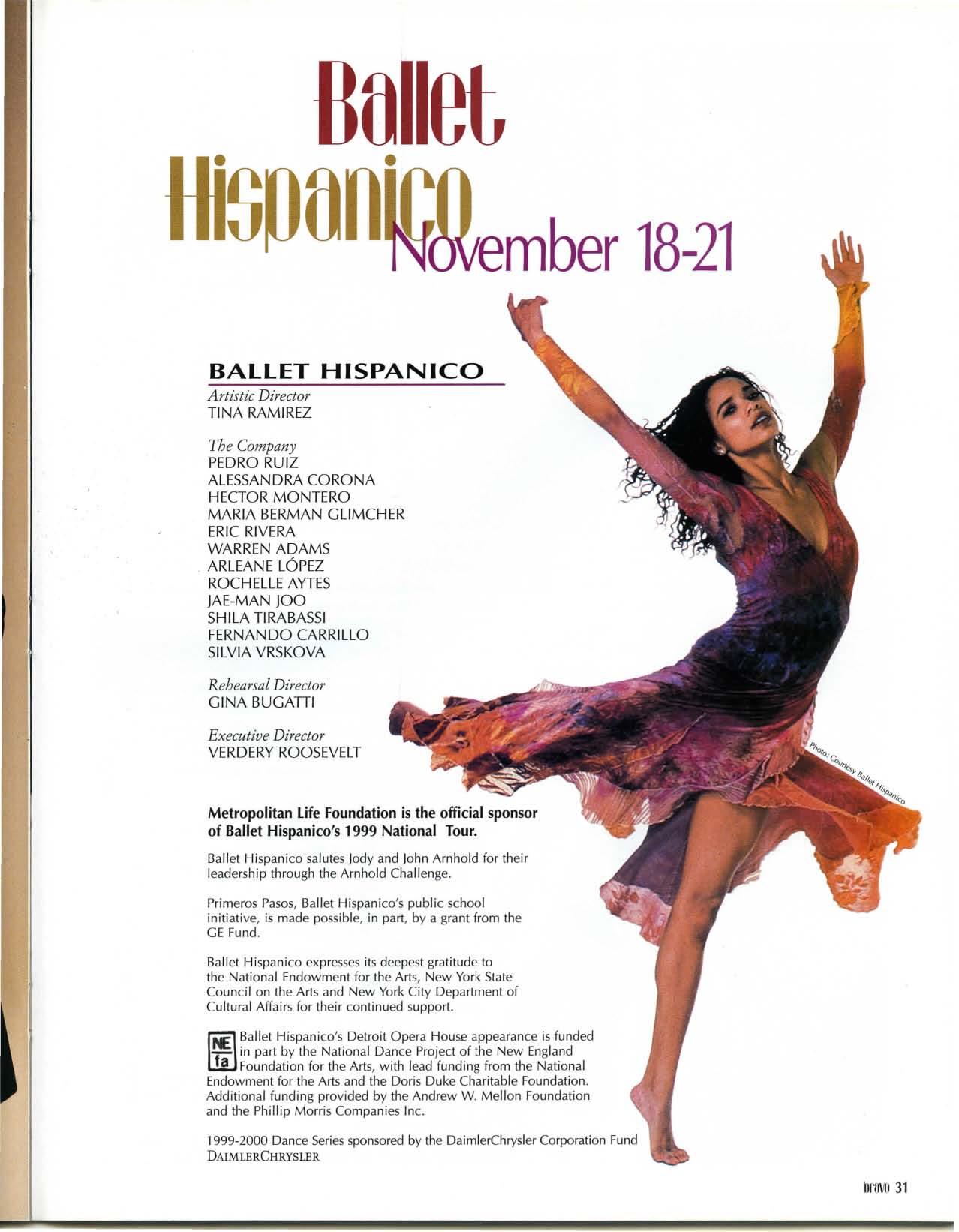 We would like to applaud the 1999-2000 season sponsors. Generous underwriting by Ford Motor Company and General Motors Corporation make the fall and spring seasons possible. DaimlerChrys ler renewed their loyal support of our Dance Series. Many thanks also go to the corporations, foundations, government agencies and individuals who make our productions possible