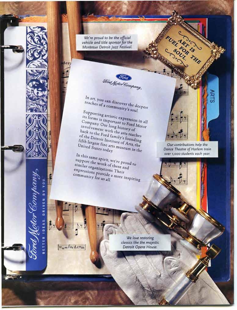 suPPOning anistic eXp'<"io n in all i" 10"ns is i"'ponaor to Ford Moto t Company. Our long history of in vol ve"'ent With th eans '<ache, bck to the FOtd fa",ily's founding 01 the Detroit InstitUte of A ns , the fifth l"gest fine "" "'useu'" in the United States tOda y.