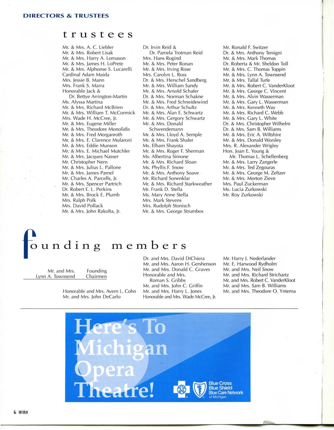 As Michigan Opera Theatre brings opera and dance into the twenty -first century, it is satisfying for us to reflect on how these art forms have touched so many generations We hope that the Detroit Opera House will be an ongoing source of pleasure and enrichment for you and your children for decades to come.