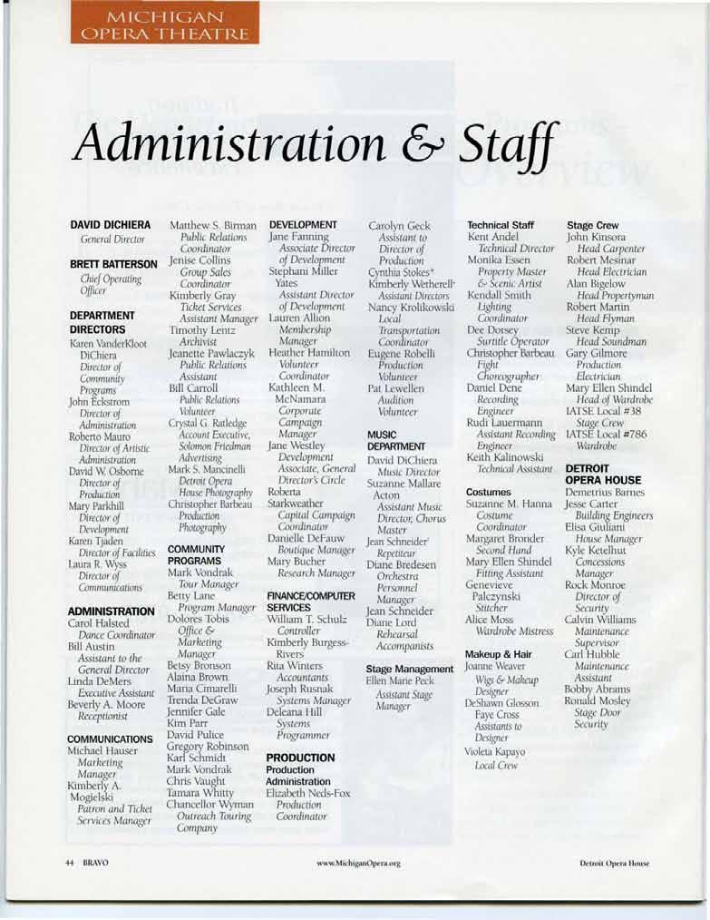 Michigan Opera Theatre Staff