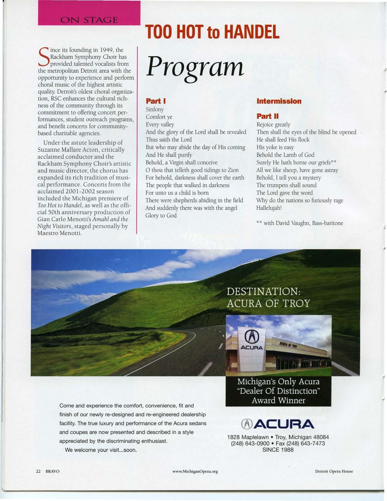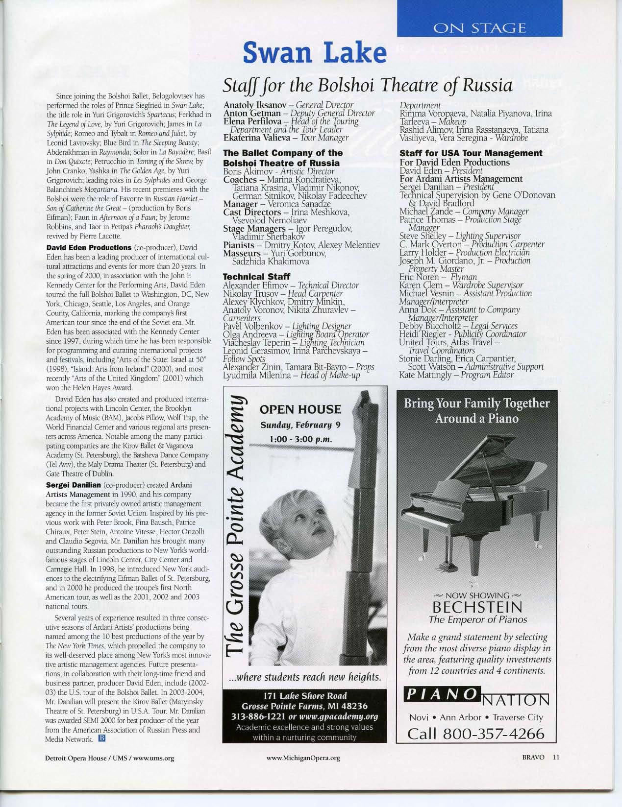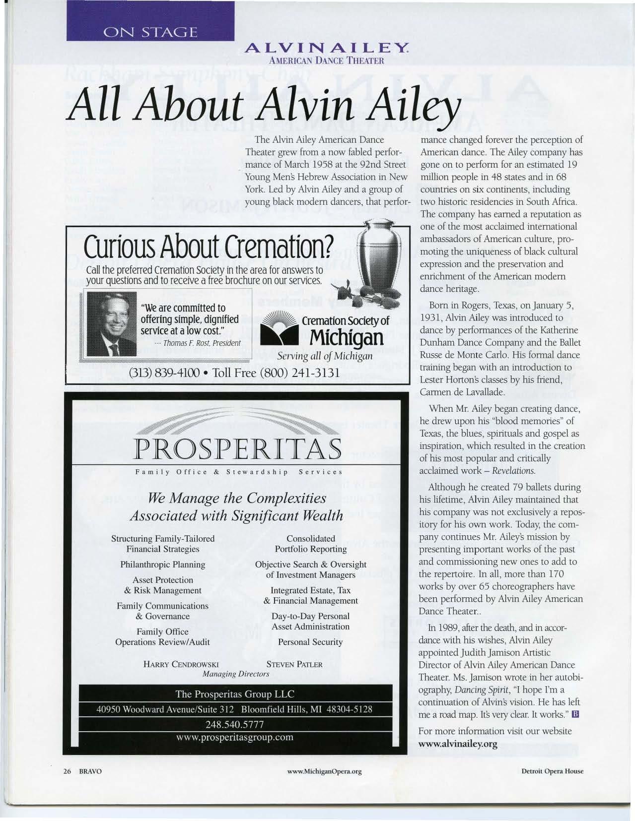 Other on-going projects include the Dance Alliance, a co ll aborative audience d evelop m ent and education effort between the Opera House and area danc e studios. Now in its third year, the www.MichiganOpera.org