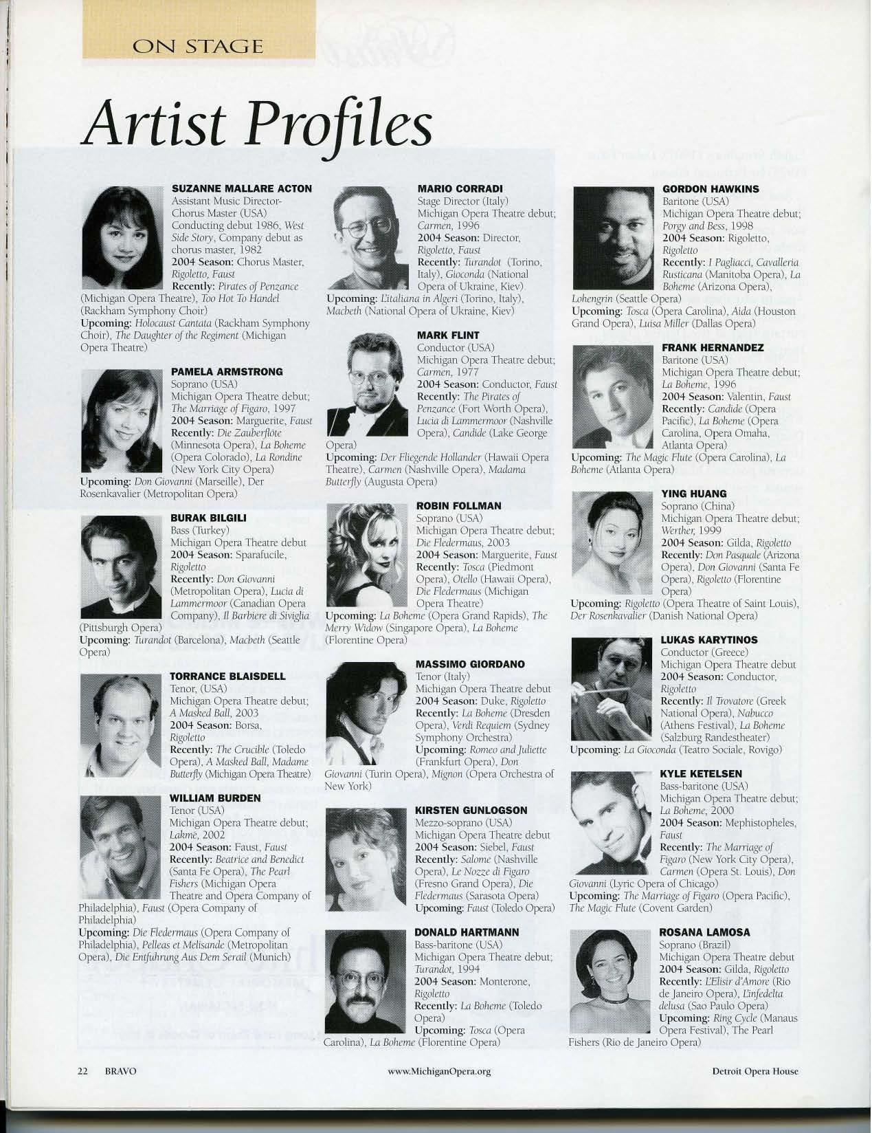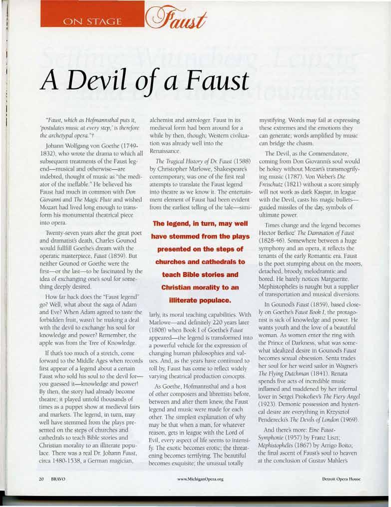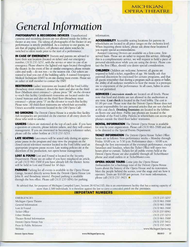 DAIMLERCHRYSLER Production Sponsor De tro it Op e ra Hou se www. Mi c hi gan O p era org BRAVO 7 Copyright 2010, Michigan Opera Theatre