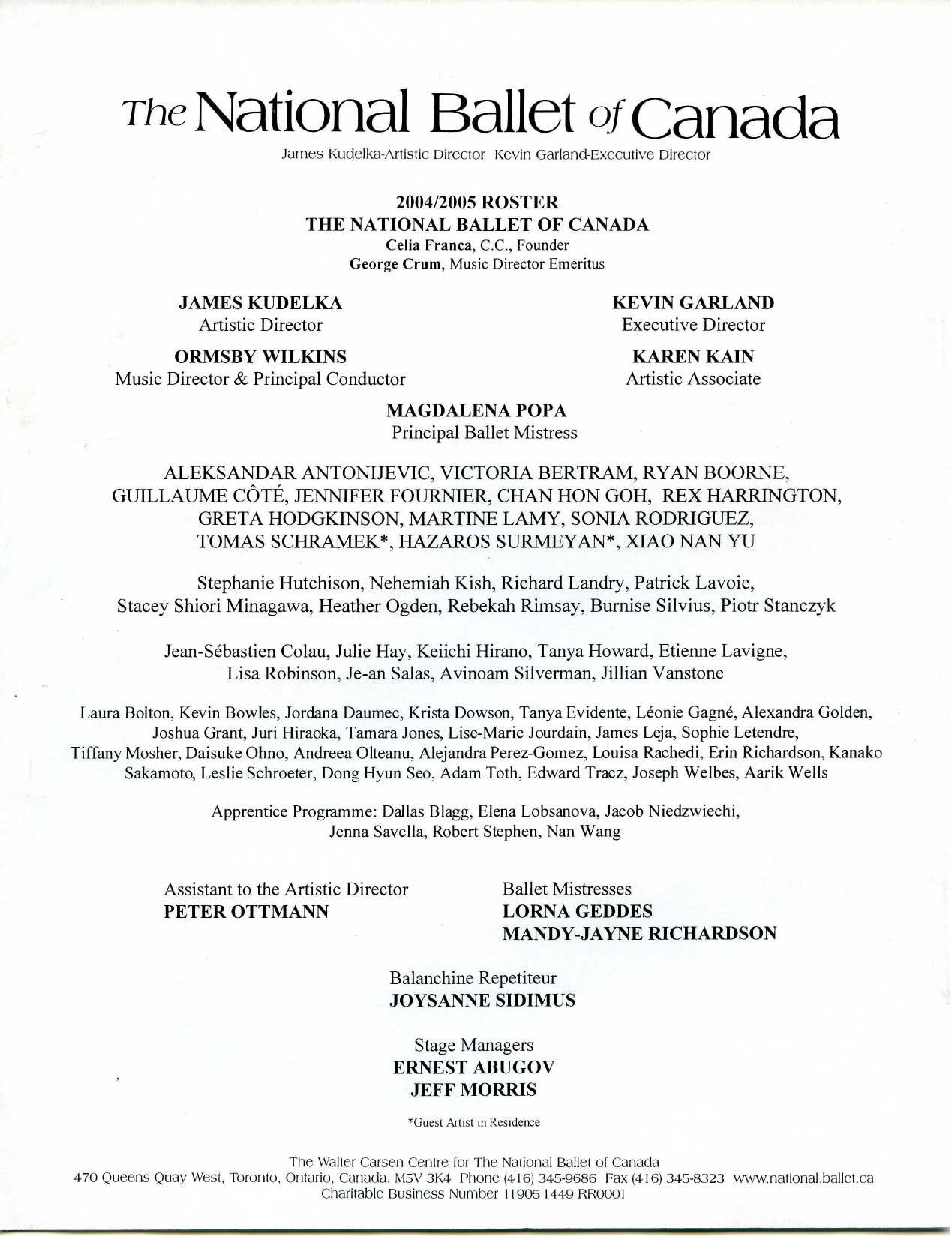 James Kudelka-Artistic Director Kevin Garland-Executive Director