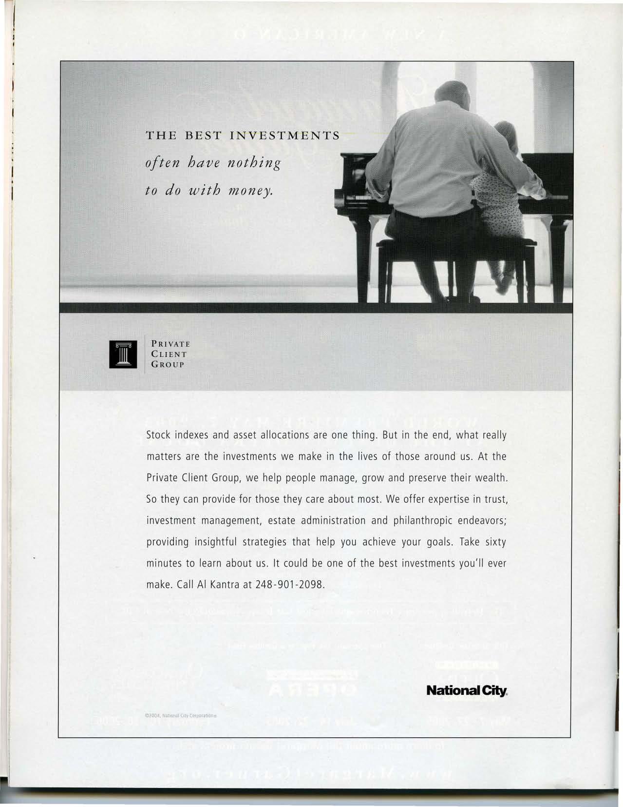 So they can provide for those they care about most. We offer expertise in trust, investment management, estate administration and philanthropic endeavors; providing insightful strategies that help you achieve your goals. Take sixty minutes to learn about us It could be one of the best investments you'll ever make. Call AI Kantra at 248-901-2098.