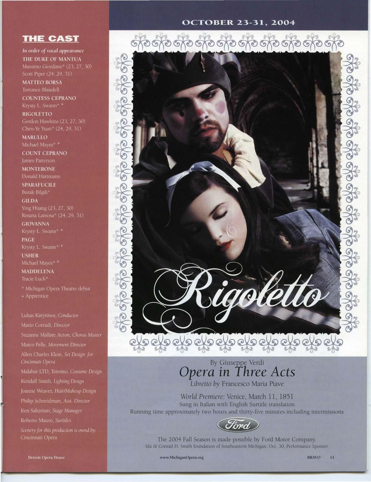 2004 Season: The Magic Flute, The Pirates ojPenzanc e, The Pearl Fish e rs, Rigoletto, Faust