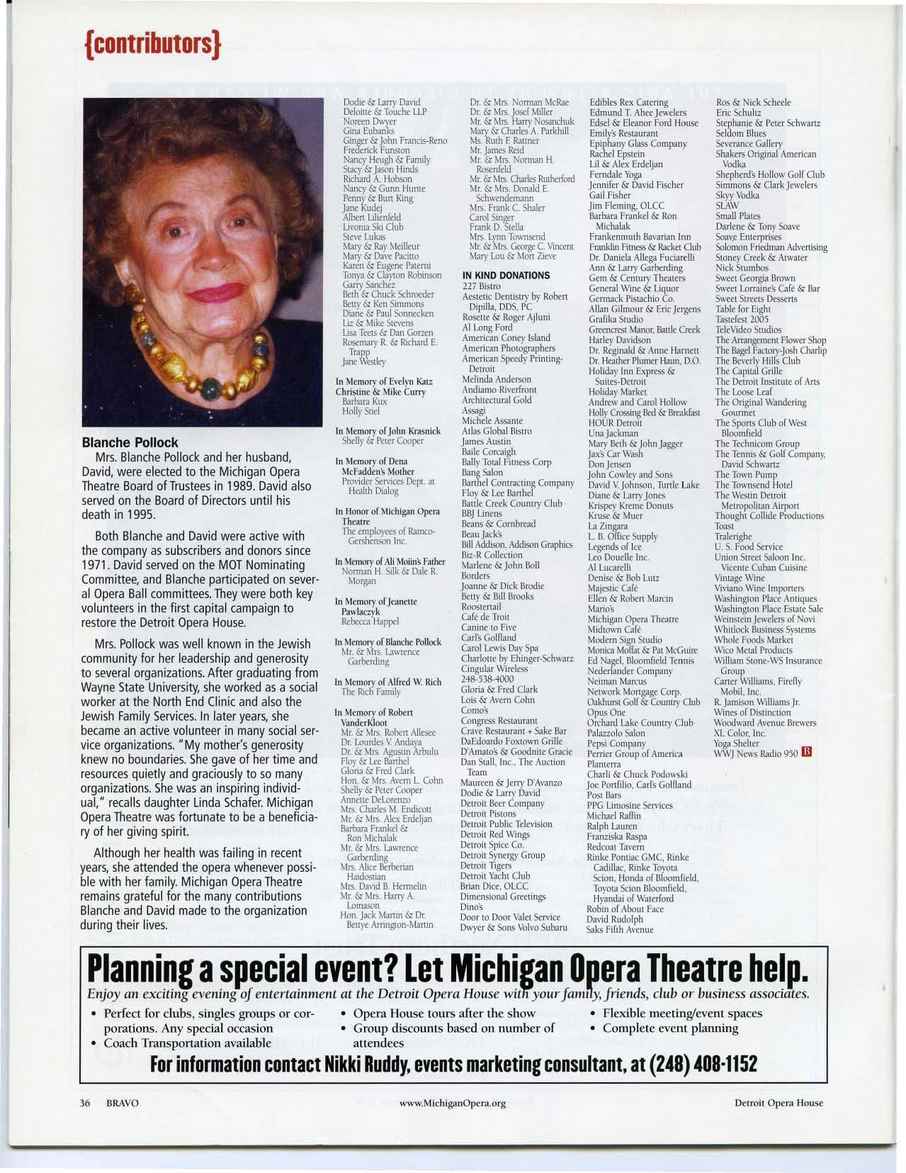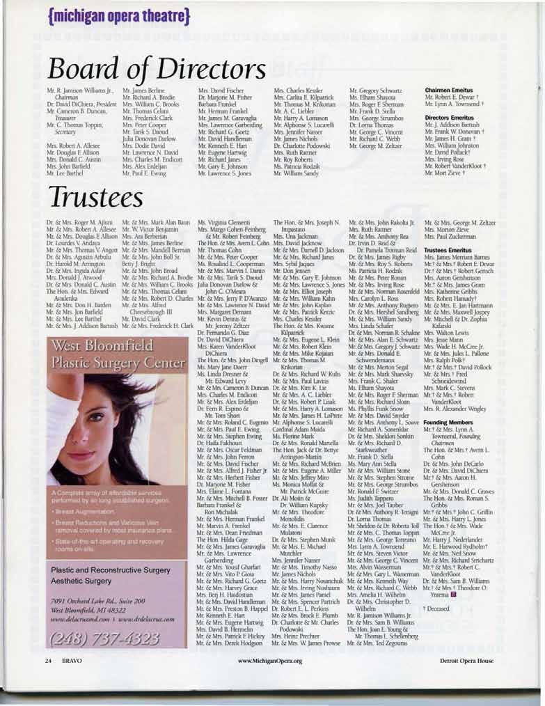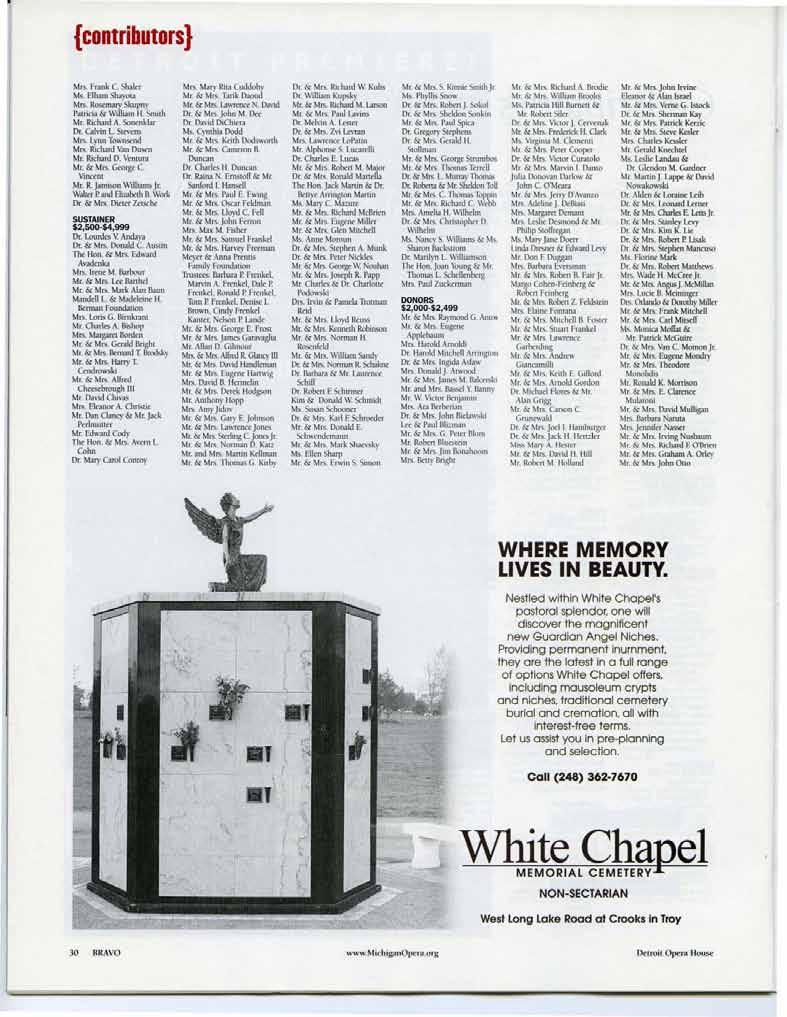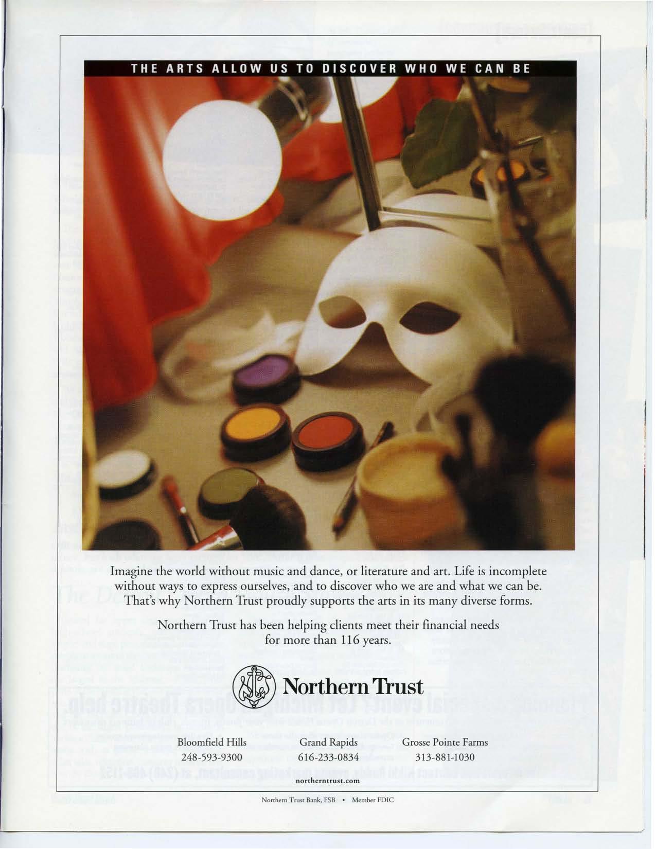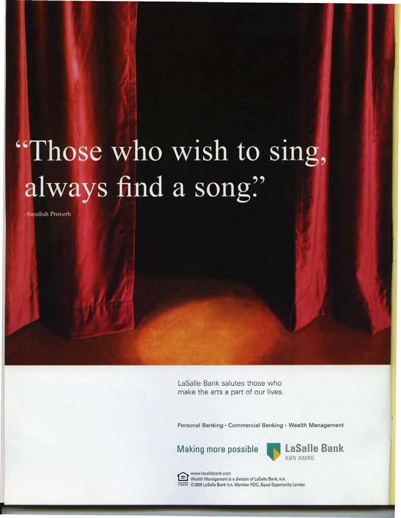 LaSalle Bank salutes those who make the arts a part of our lives. Personal Banking· Commercial Banking· Wealth Management Making more possible LaSalle Bank ABN AMRO www.lasallebank.com t:J Wealth Management is a division of LaSalle Bank, NA [,.m ©2005 LaSalle Bank NA Member FDIC. Equal Opportunity Lender Copyright 2010, Michigan Opera Theatre