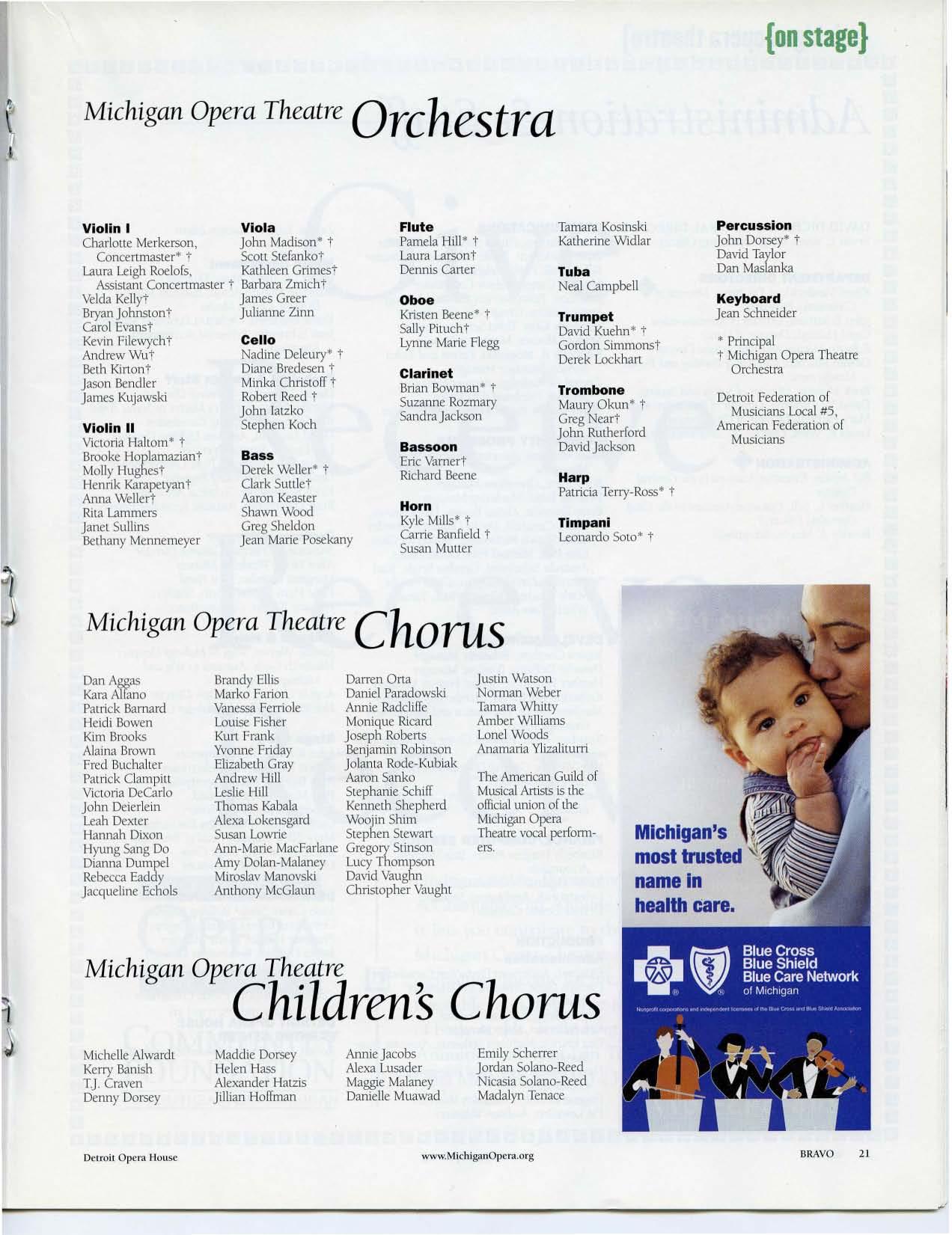 Michigan Opera Theatre is a no n profit cultural organization , whose activities are supported in part by th e Michigan Council for Arts and Cultural Affairs, the National Endowment for the Arts, and other individuals, corporatio n s and foundations. Michigan Opera Theatre is an Equal Opportunity Employer.