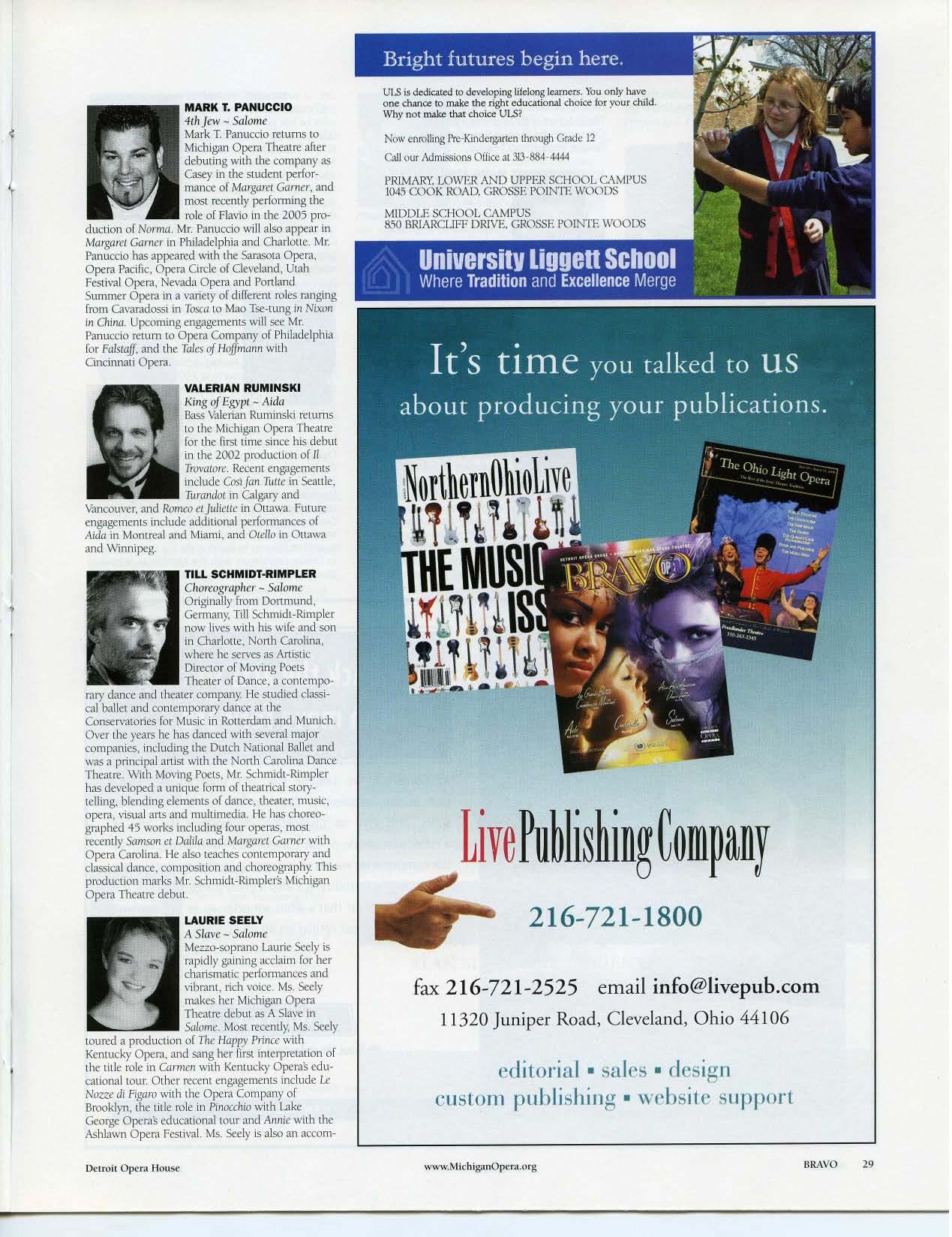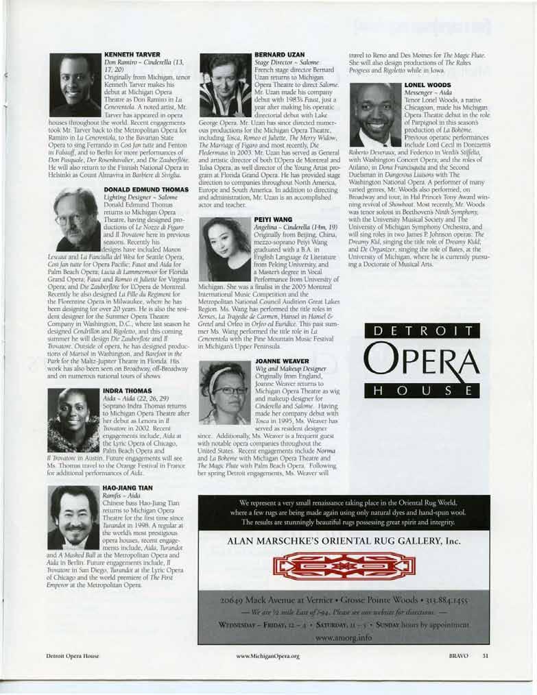 The Officia l Mag aZin e of t he Det roit Opera House BRAVO IS A MI C HI GAN OP ERA THEAT RE P UB LI CAT ION CONTR I BUTORS