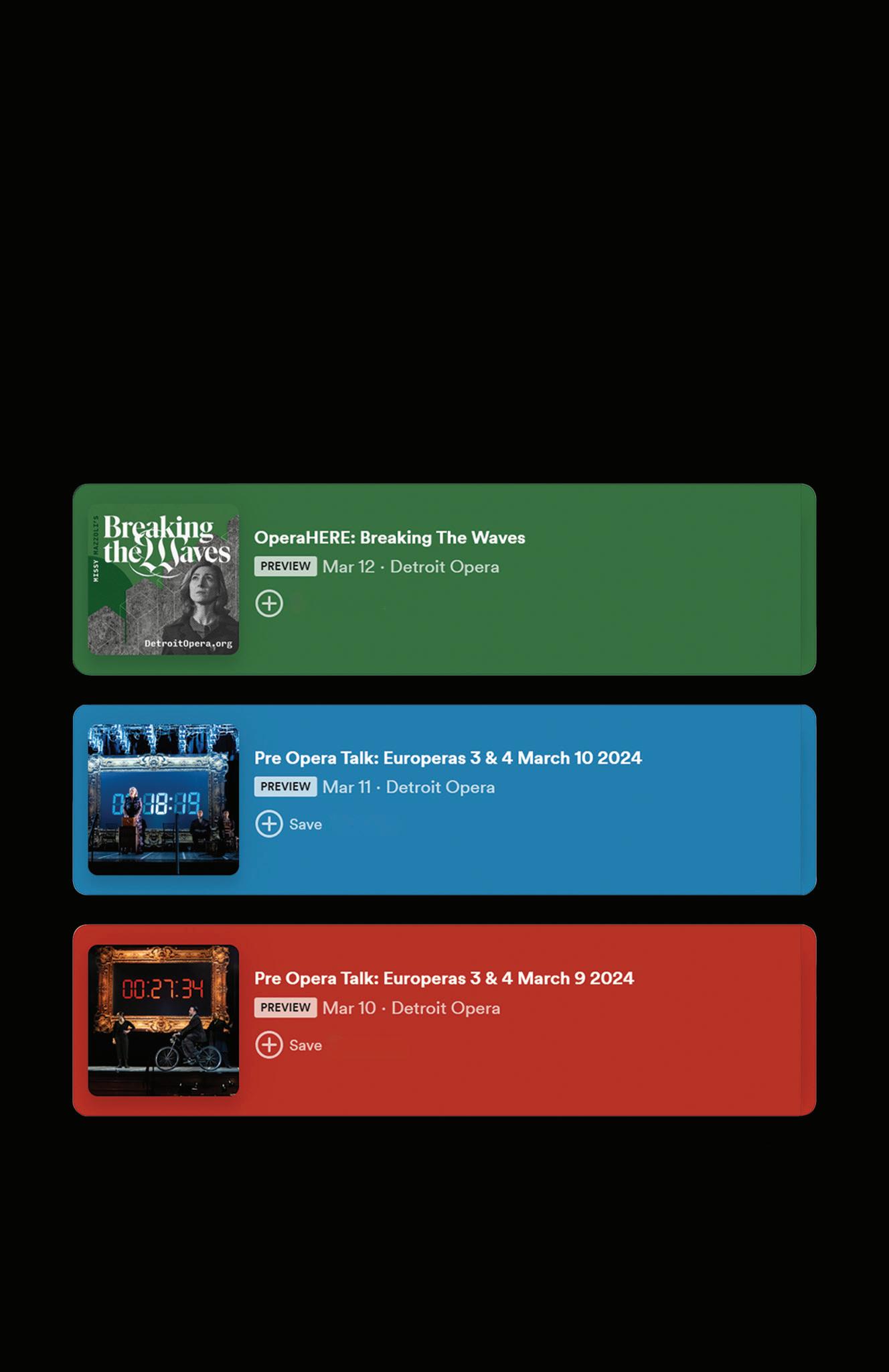 Whether you’re at home, on a lake, or in your car, you can listen to Detroit Opera podcasts. OperaHERE examines historical contexts of operas and features personal interviews with members of the cast and creative team. You can also catch our Pre-Opera Talks, which occur before each live performance, where you’ll be able to hear from members of the Detroit Opera company.
