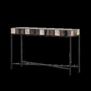 Ook reststukken krijgen een bestemming in onze meubels. Salontafel Cone bestaat uit schijfjes hout, gemaakt van de takken van een teakboom. De zwarte kleur benadrukt de structuur.