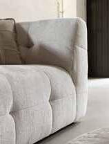 Deze kubistische bank heeft een royale aanblik. De doorgestikte kussens en ronde hoeken zorgen voor een zachte uitstraling.